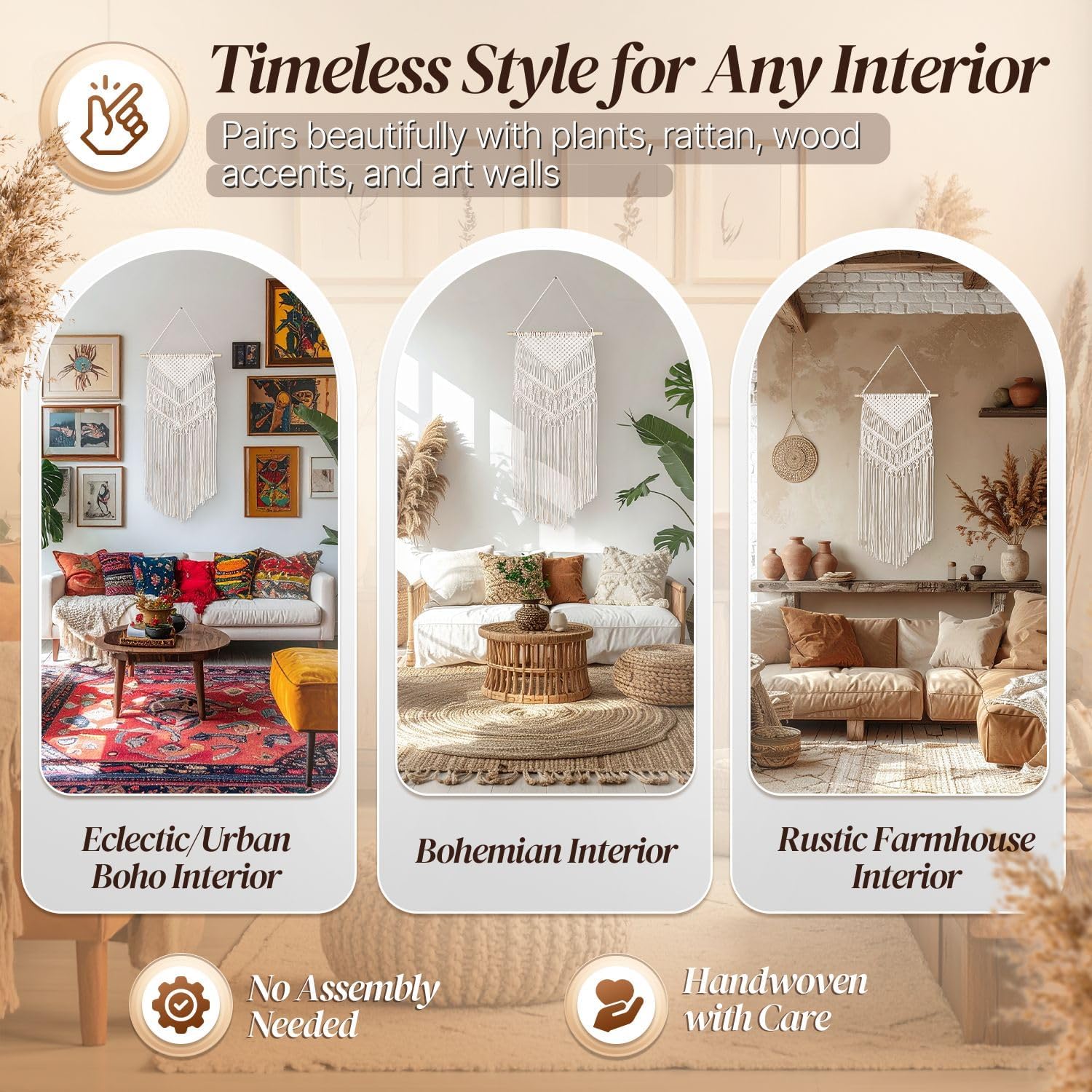 - Premium Materials and Detail - Hand-woven macrame tapestry natural cotton weaves are tough with artistic mesmerizing knots and patterns. Meticulously handcrafted, as an eye-catching work of art. It's a perfect gift for friends and family