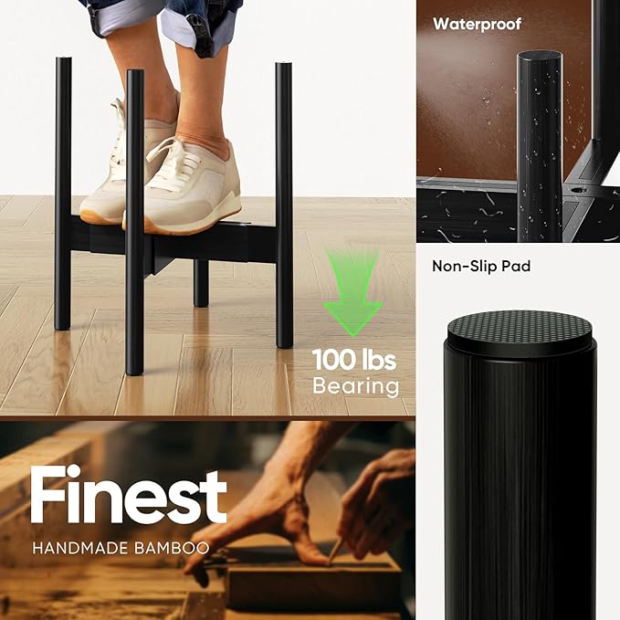 - 【Strong and Durable】100% handmade bamboo and wood plant stand; sturdy and durable; easy to support large size heavy flower pots