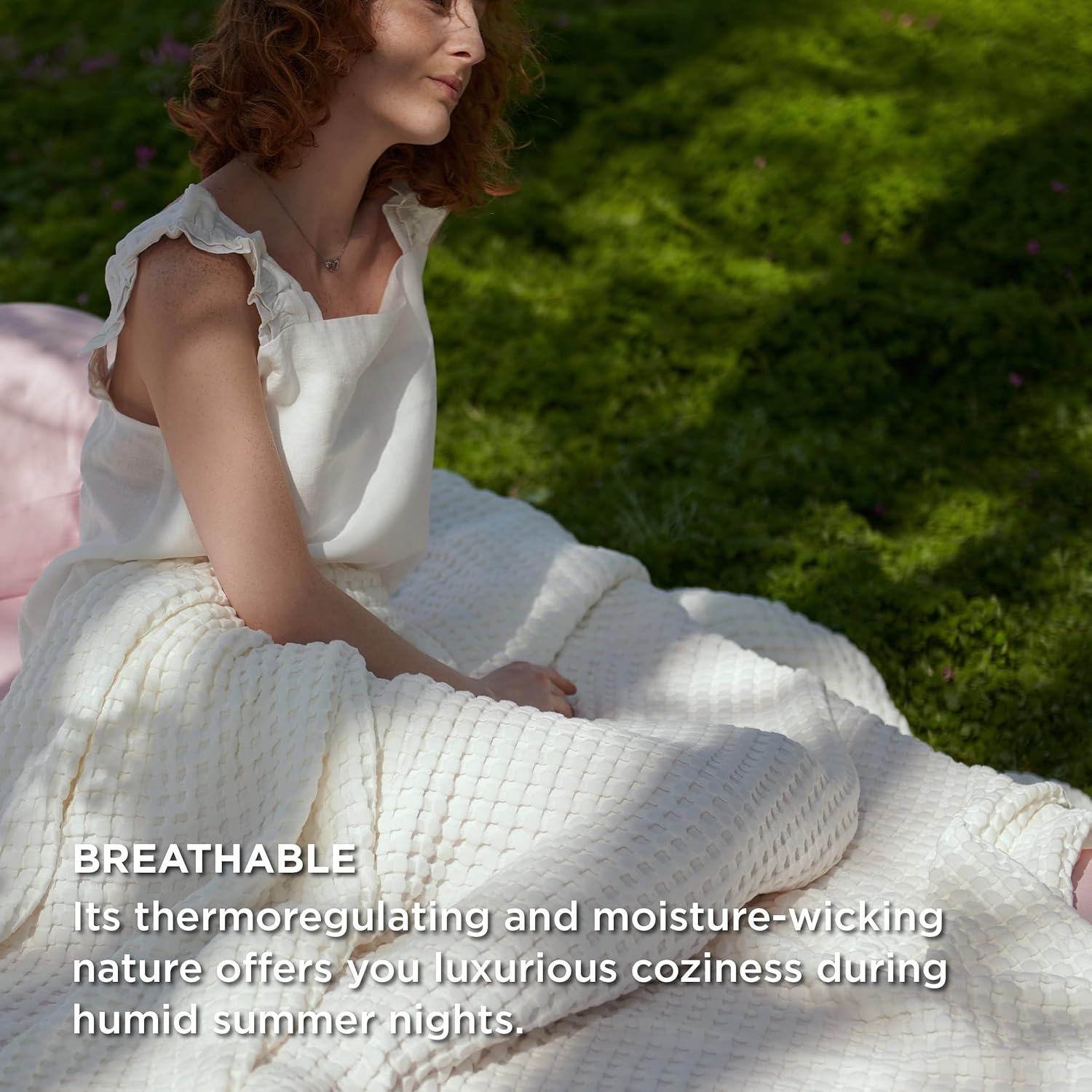- Breathable & Moisture-Wicking: Made from 50% cotton and 50% rayon derived from bamboo, this cooling blanket naturally absorbs moisture and is exceptionally breathable, providing a comfortable and dry night's sleep for hot sleepers.
