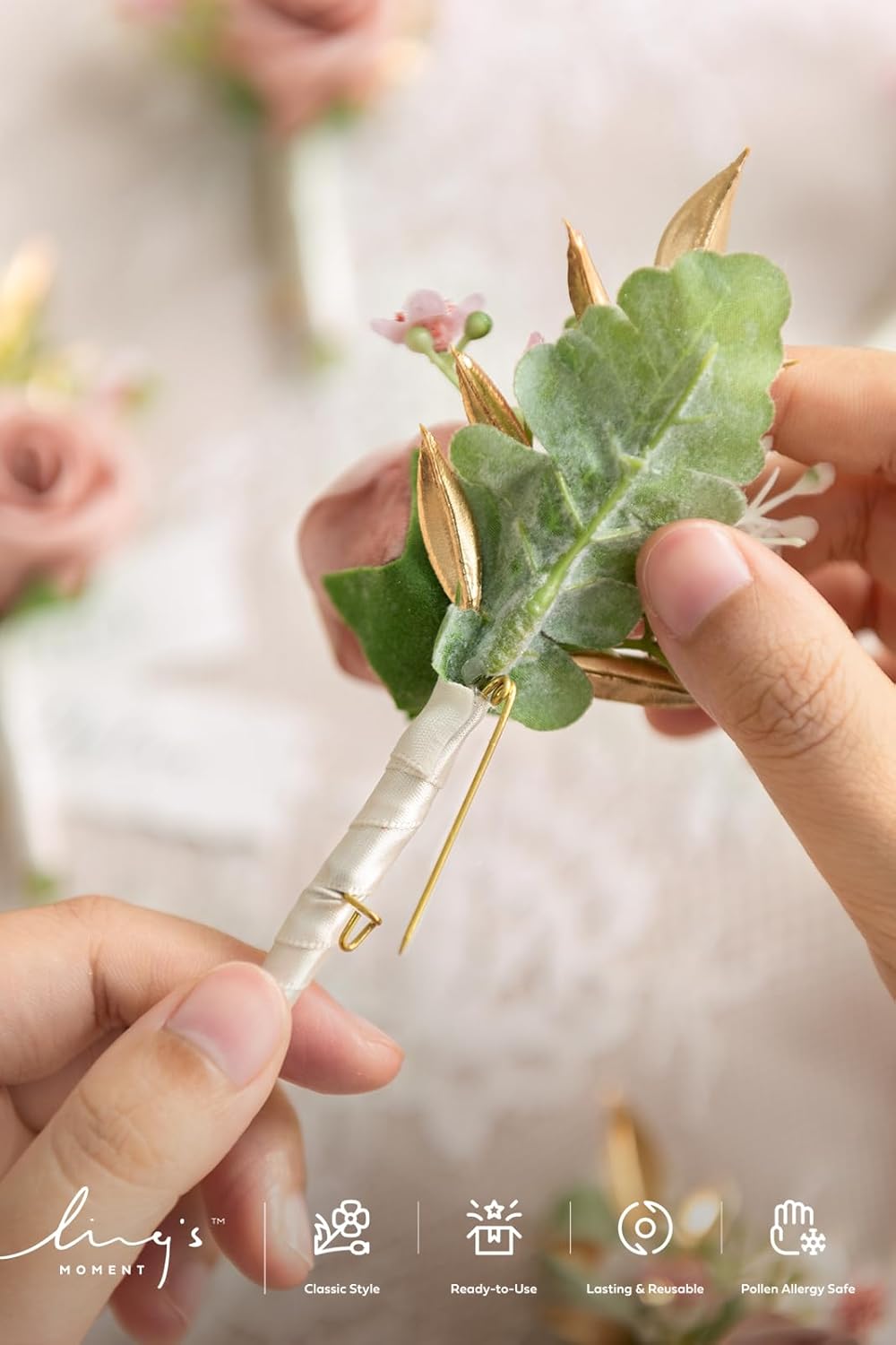 Ling's Moment Boutonniere for Men, 10pcs Groomsmen Guest Boutonniere, Artificial Flowers for Wedding Décor/Prom/Homecoming,etc.Dusty Rose Pink
