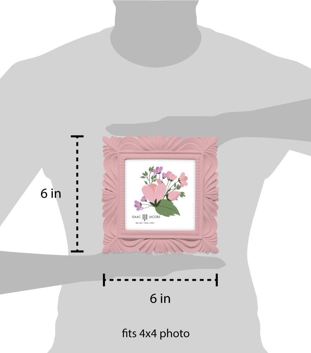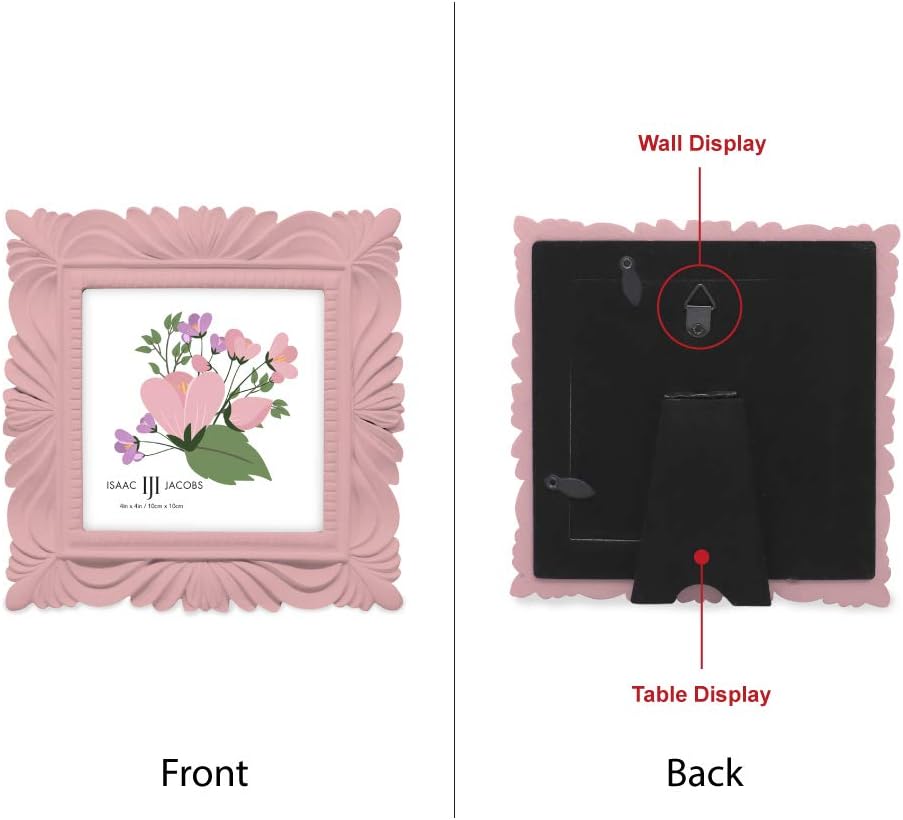 Isaac Jacobs 4x4 Pink Wave Textured Hand-Crafted Resin Picture Frame with Easel & Hook for Tabletop & Wall Display, Decorative Swirl Design Home Décor, Photo Gallery, Art, More (4x4, Pink)