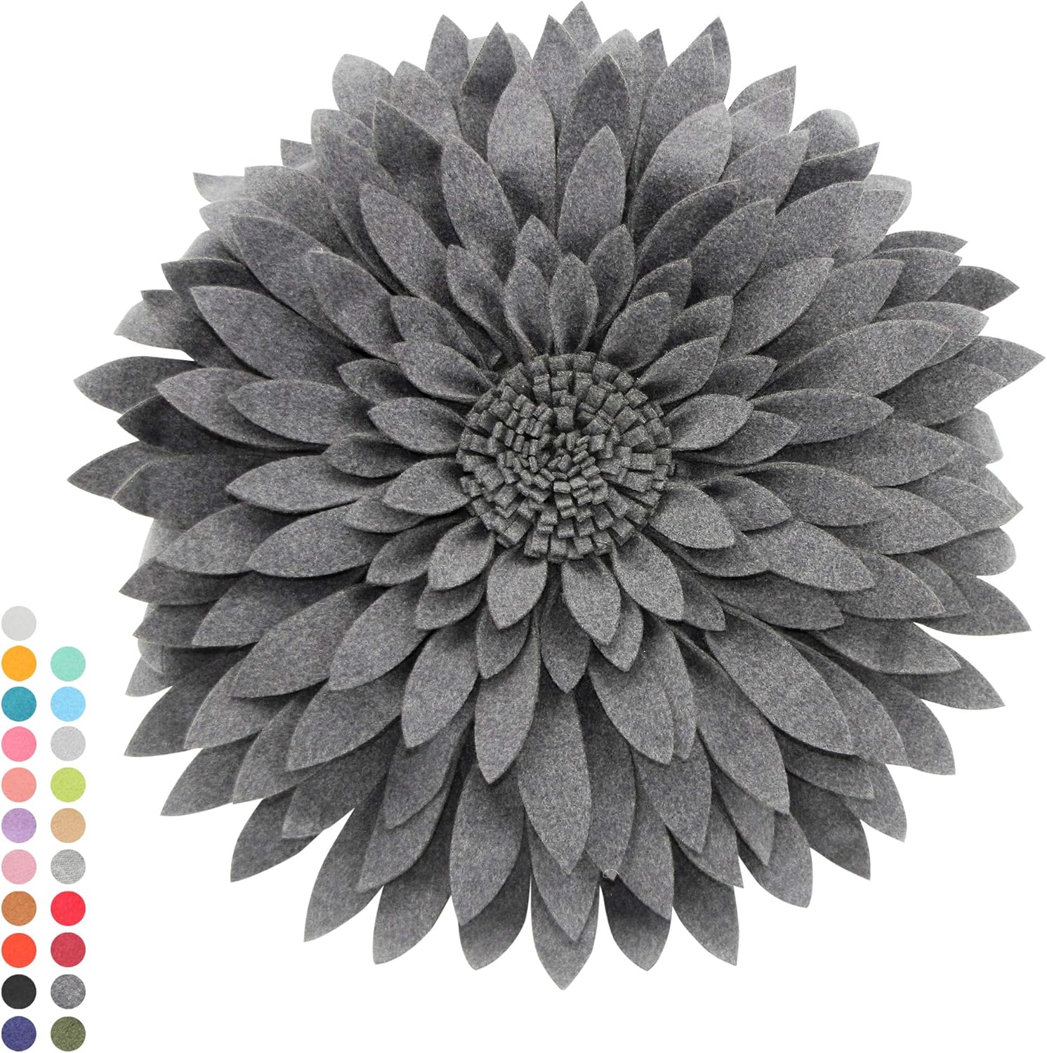 Contempo Lifestyles 3D Daisy Flower Decorative Pillow - Patented Design, Couch & Bed Decor (18" Flower, 16" Pillow, Dark Heather Grey)