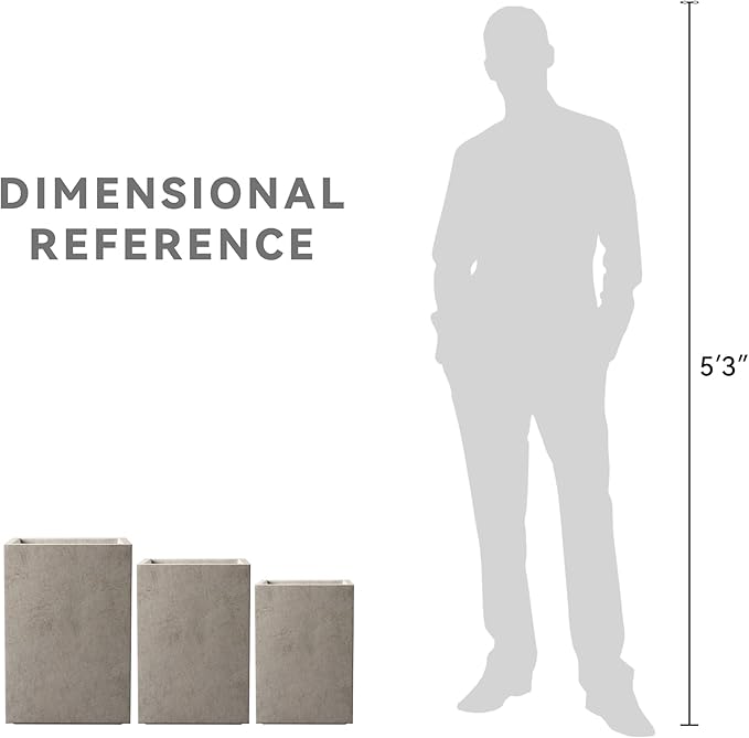 Kante 18.5",15.7",12.6" H Tall Rectangular Concrete Planters Set of 3, Outdoor Indoor Lightweight Plant Pots with Drainage Hole and Rubber Plug, Modern Style for Home Garden Patio, Weatheted Concrete