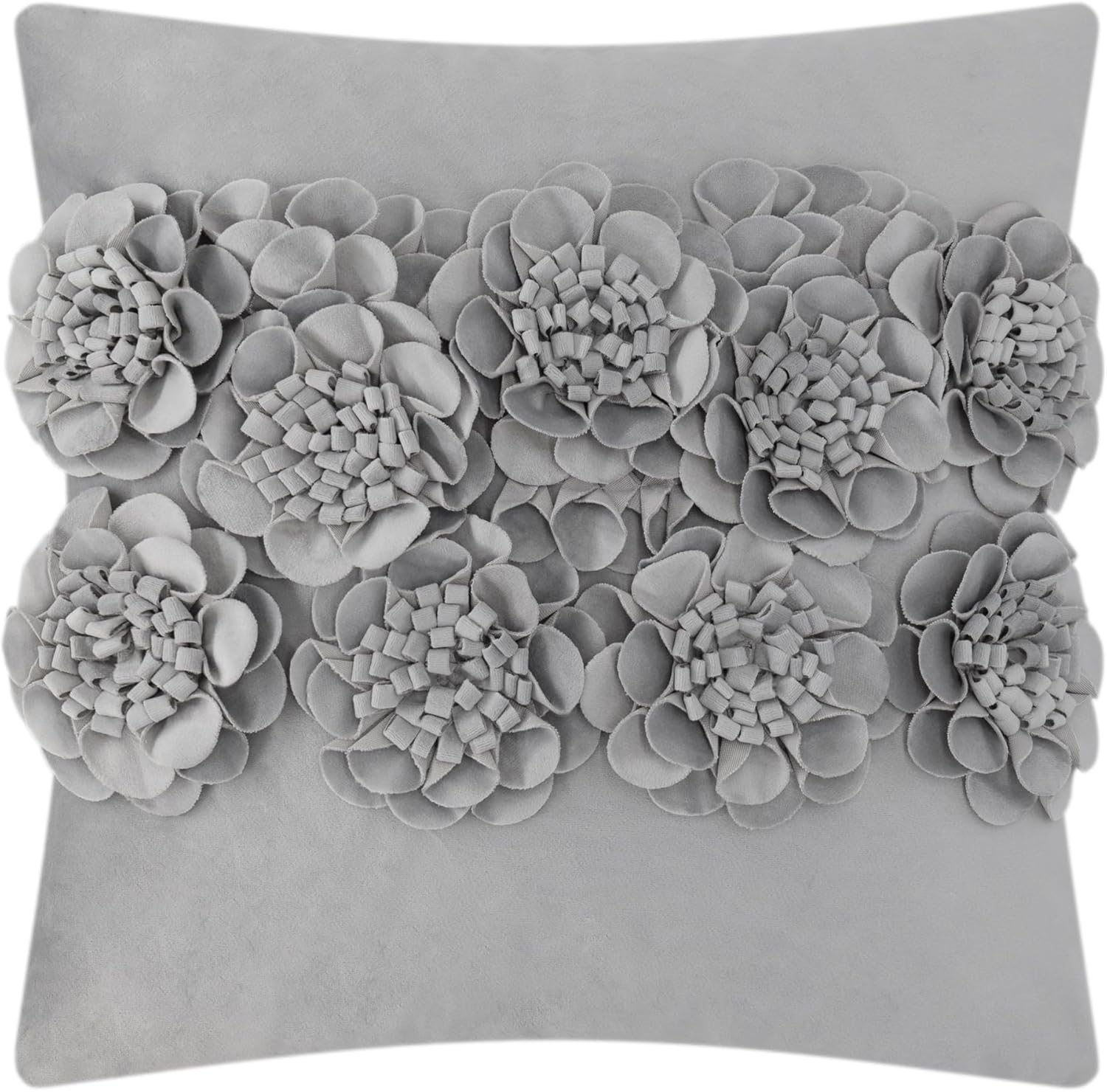 JWH Handmade 3D Flower Throw Pillow Covers Aesthetic Decorative Colorful Floral Accent Pillow Cases Stereo Pillowcase Cute Cushion for Car Bed Couch Bedroom Decor 18x18 Inch Gray