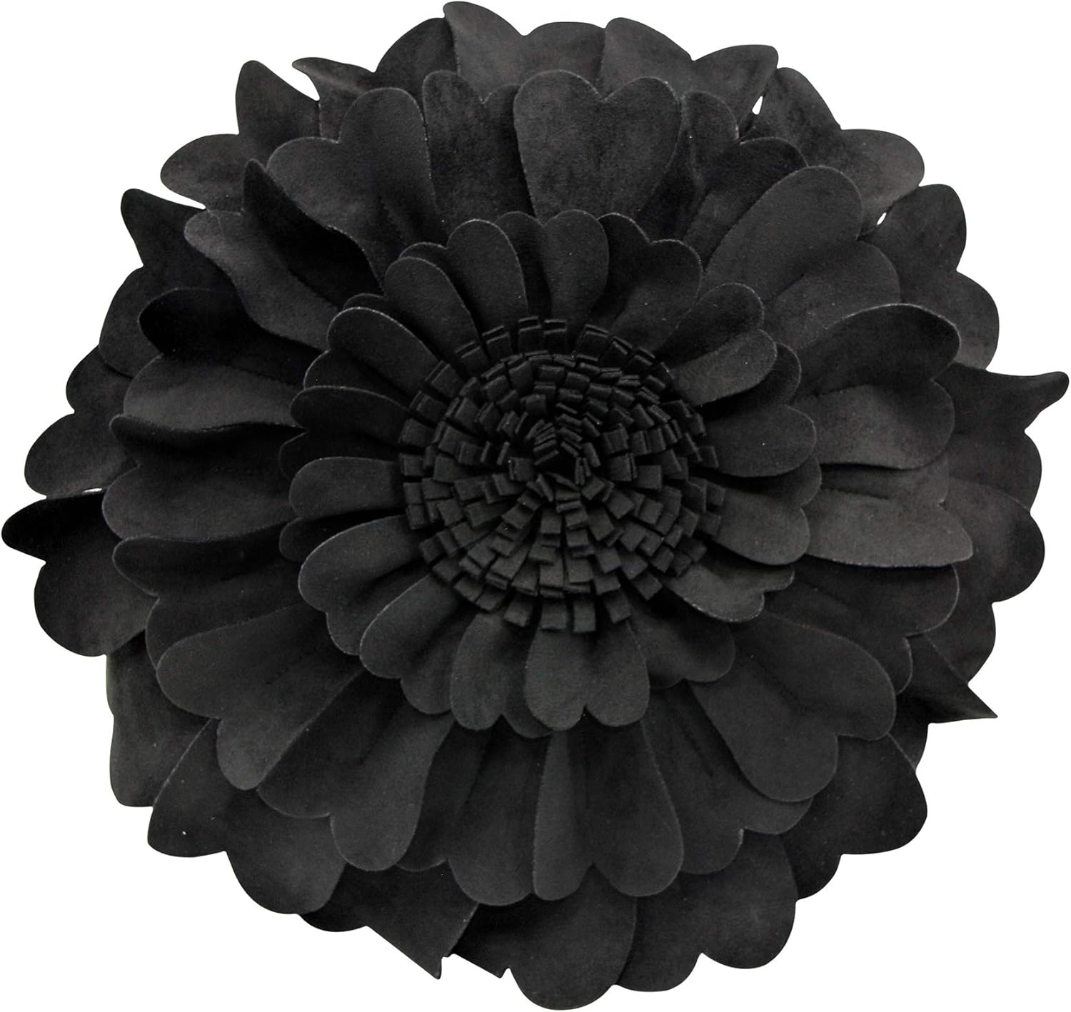 Contempo Lifestyles 13 Inch Black 3D Round Heart Floral Throw Pillow - Soft & Snuggly Suedette Polyester Fill - Decorative Accents, Gifts