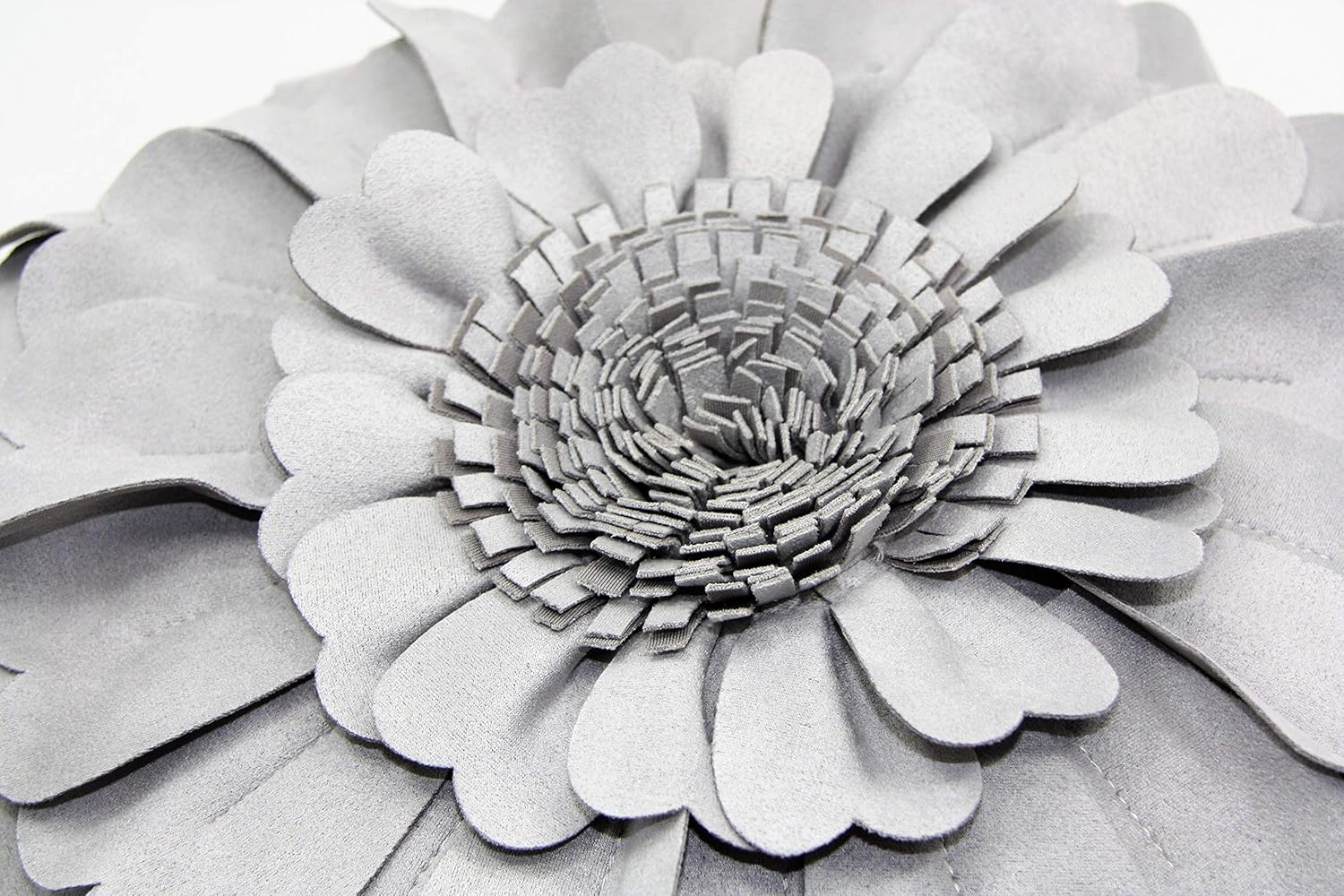 Contempo Lifestyles 3D Round Throw Pillow - Sweetheart Flower Pillow, Grey, 13 Inch