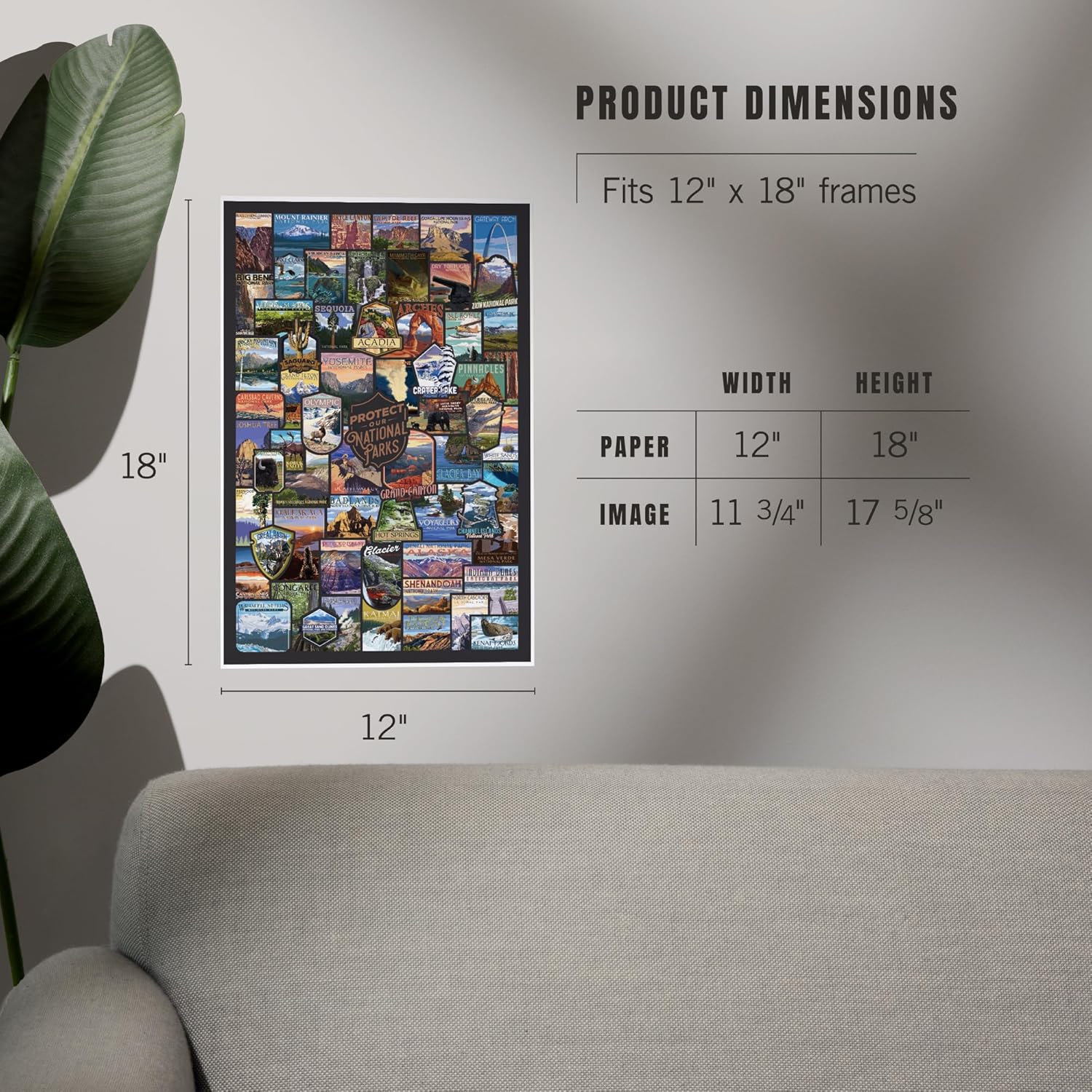 - 12 x 18 inch paper, 11 3/4 x 17 5/8 inch image area with white border; Lantern Press 12x18 Inch Art Print Wall Decor, Protect Our National Parks, Collage,