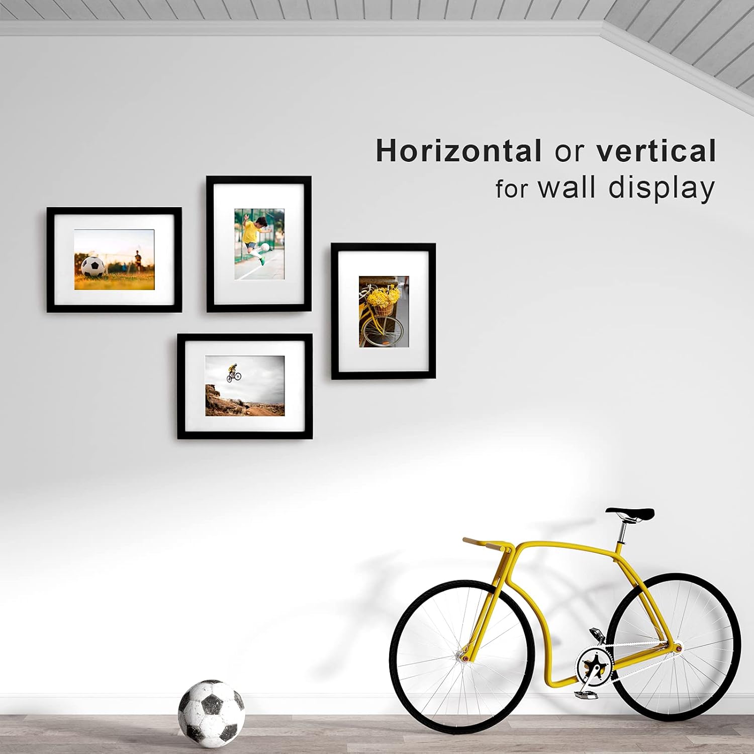 Egofine 9x12 Picture Frames Set of 4, Made of Solid Wood Covered by Plexiglass 5x7 and 6x8 with Mat or 9x12 without Mat, for Table Top Display and Wall Mounting Photo Frame Black