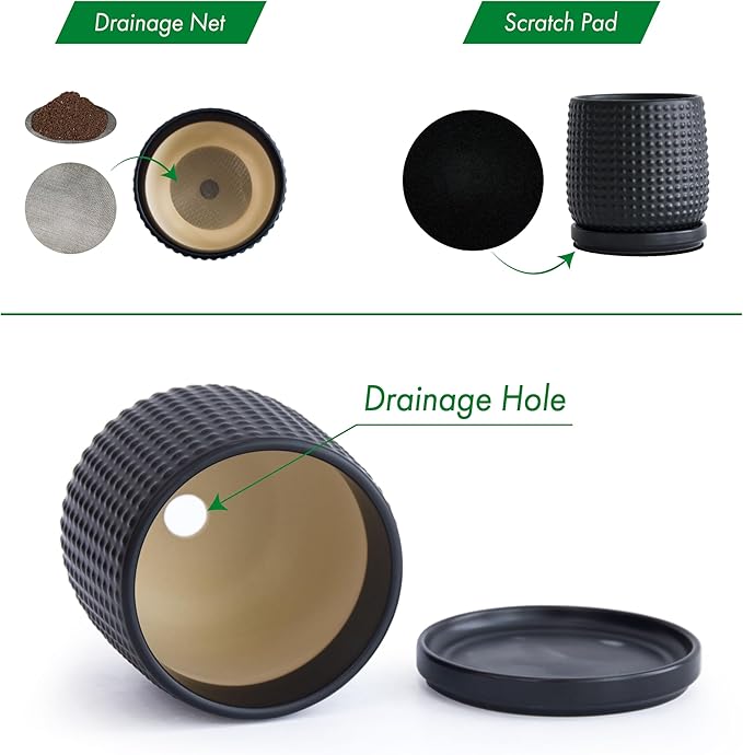 - >> Drainage Net and Pad - A stainless-steel drainage mesh net is also included to prevent soil from falling off the pot. Another protective pad is included to protect tabletop wood surface from scratches.