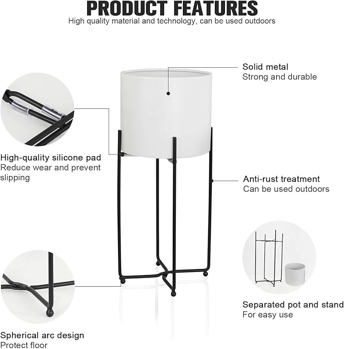 - 【Modern Minimalist Style Design】Elegant house floor planter stand reflects minimalist which inspired by classic mid-century style. Well fits to most home decor and furniture, can be paired with a variety of plants and flowers on vases. Mid-century design adds a touch of class to any room, balcony, window, patio or garden