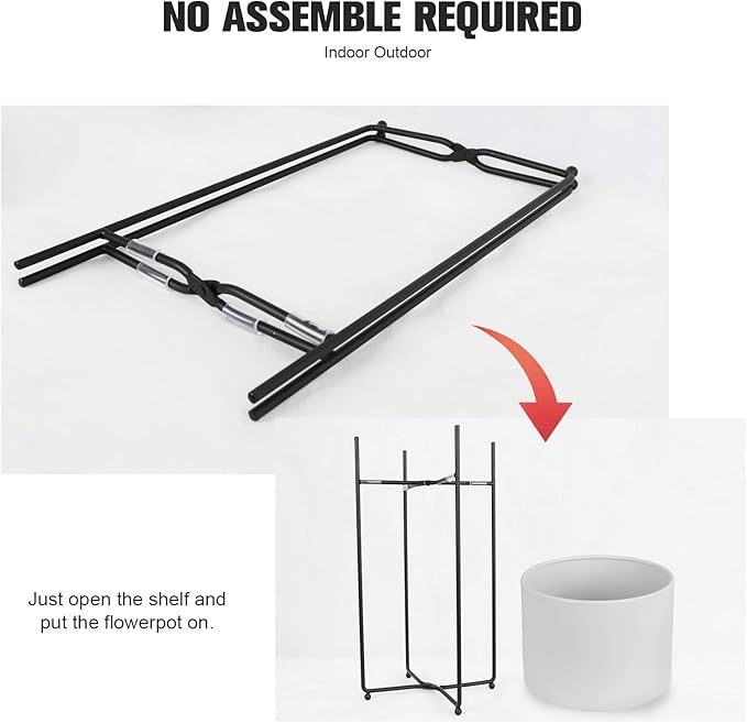 - 【COMPLETE SET & NO ASSEMBLE】 The 3 pcs standing planters are coming with metal plant stands. No assemble needed. Just open the stand and put the black metal planters on it