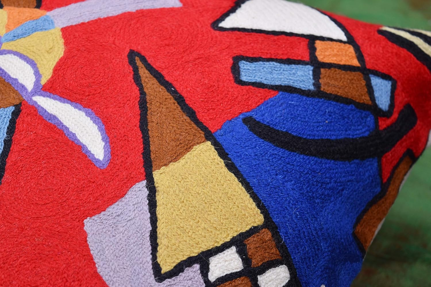Kandinsky Contemporary Throw Pillow Cover - Bright | Red Modern Pillow Cases | Abstract Accent Pillows | Contemporary Couch Cushions | Hand Embroidered Cushion | Wool Size 18x18