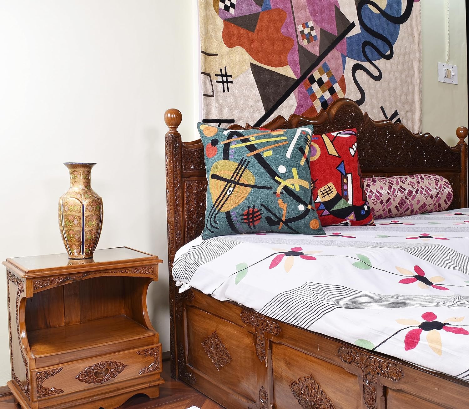- π MODERN THROW PILLOW COVER - HAND EMBROIDERED: These colorful decorative modern throw pillow covers are inspired by the art of Kandinsky and are hand embroidered in soft wool to perfection, stitch by stitch, by the finest artisans, creating an extraordinary all modern abstract pillow for your home decor. A close-up view of this all modern accent pillow cover allows you to see the amazing fine chain-stitch hand embroidery. A perfect modern sofa pillow for your contemporary couch.