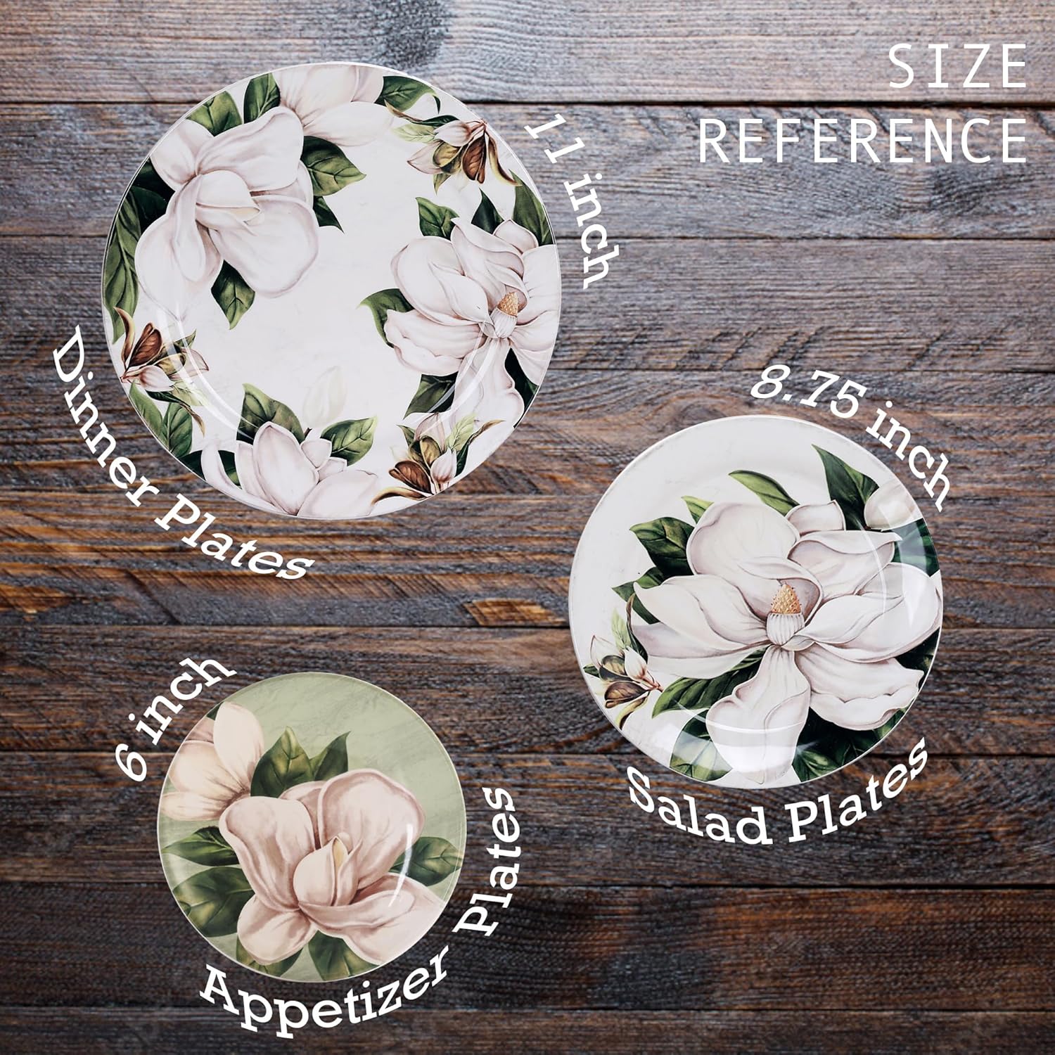 Bico Magnolia Floral Dinner Plates Set of 4, 11 Inch Large Ceramic Plates for Pasta, Steak, Stylish Serving Dishes, Microwave and Dishwasher Safe, Gift for Housewarming and Thanksgiving