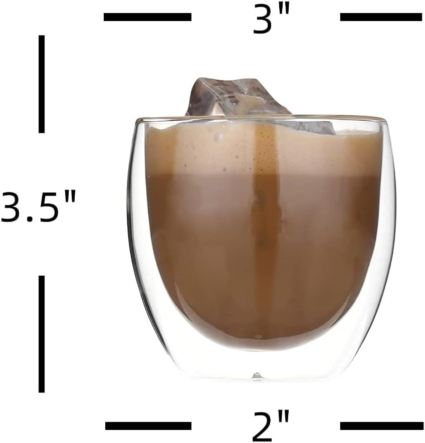 - DOUBLE WALL GLASS: Each cup is designed with double-walled insulation to keep drinks hotter for longer. Enjoy a better-tasting coffee or tea in this glass, Our unique shape makes your drink look suspended-in-air. Leave it in the freezer to have a chilled, drinking-ready glass on hand.