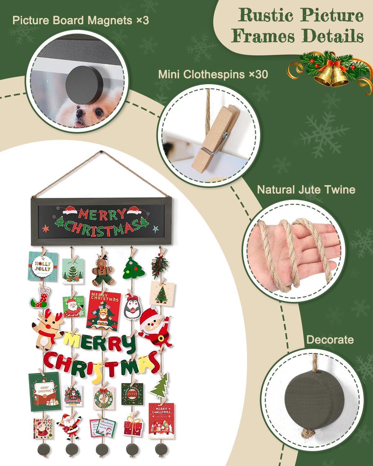 Bikoney Picture Frames Collage Photo Hanging Display Picture Board Wood Rustic Frames for Wall Decor with Blackboard and 30 Clips Weathered Grey
