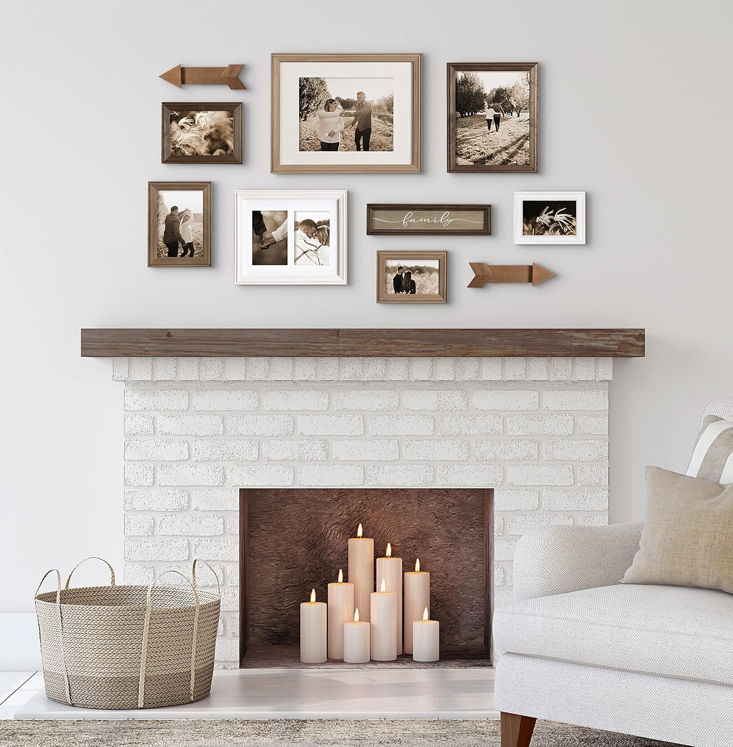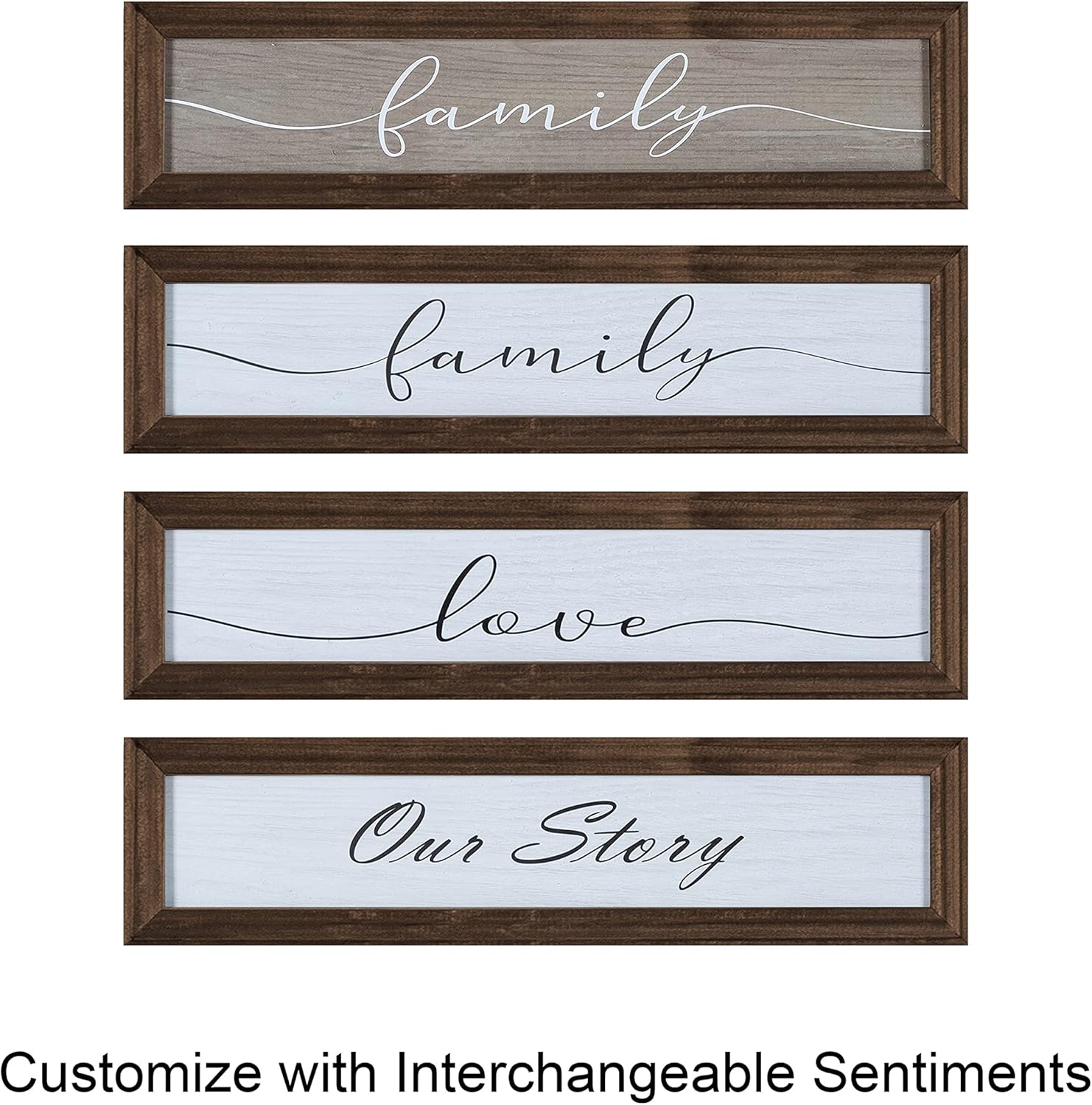 - MULTIPLE DISPLAY ACCENTS: This collection includes seven frames, two decorative wooden arrows, and a slim frame made to showcase four face paper options: "Our Story" in white, "Love' in white, "Family" in white, and "Family" in brown