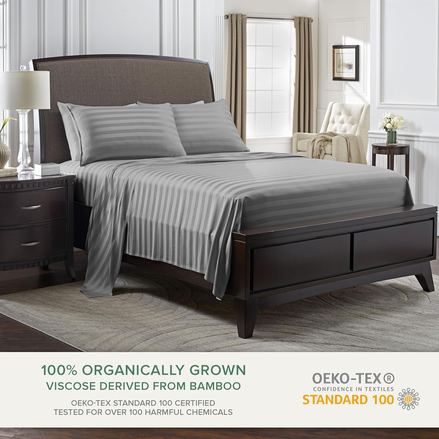 - ✔ GENUINE 100% ORGANICALLY GROWN VISCOSE DERIVED FROM BAMBOO - Crafted from the finest quality luxusiously soft 100% Organically Grown Viscose derived from Bamboo, and are OEKO-TEX Standard 100 Certified and tested to be free from over 100 harmful substances, ensuring that it is safe and healthy for your family. Our bed sheets are never blended with other fibers or fabrics unlike most competitors.