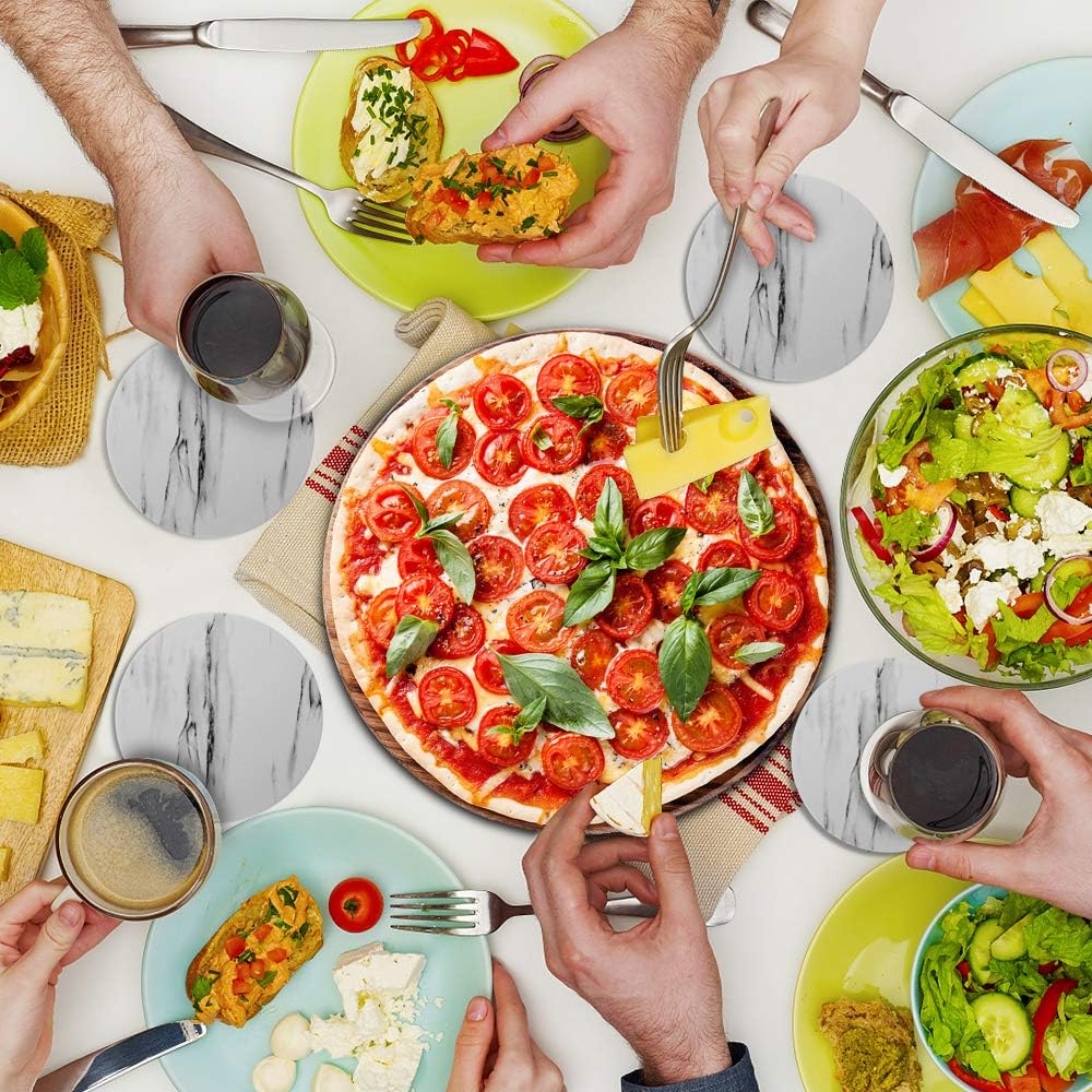 - Wide Application: Natural black and white marble-pattern design, goes with everthing. Great for home, kitchen, living room, bar, hotel, party and restaurants. The drink coasters can be used on the wooden table and marble stone table,modern home decor.