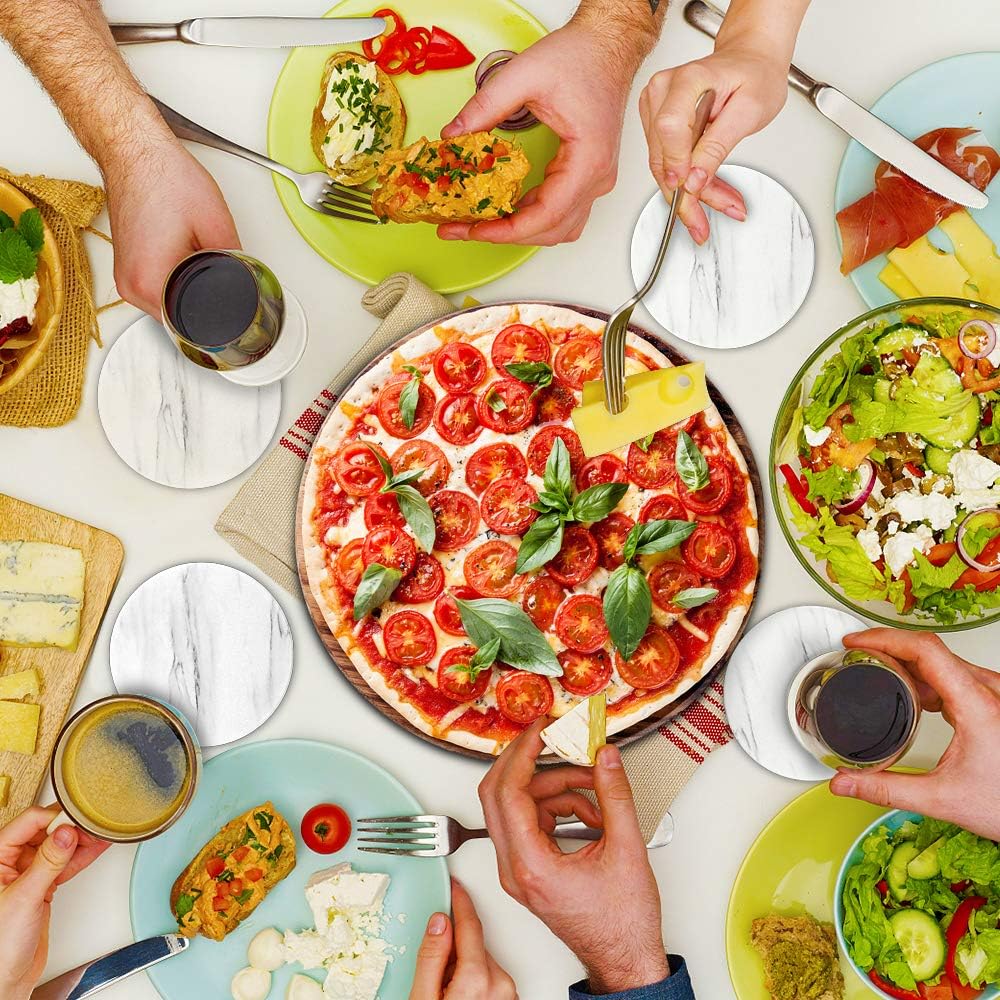 - Wide Application: Natural black and white marble-pattern design, goes with everthing. Great for home, kitchen, living room, bar, hotel, party and restaurants. The drink coasters can be used on the wooden table and marble stone table,modern home decor.