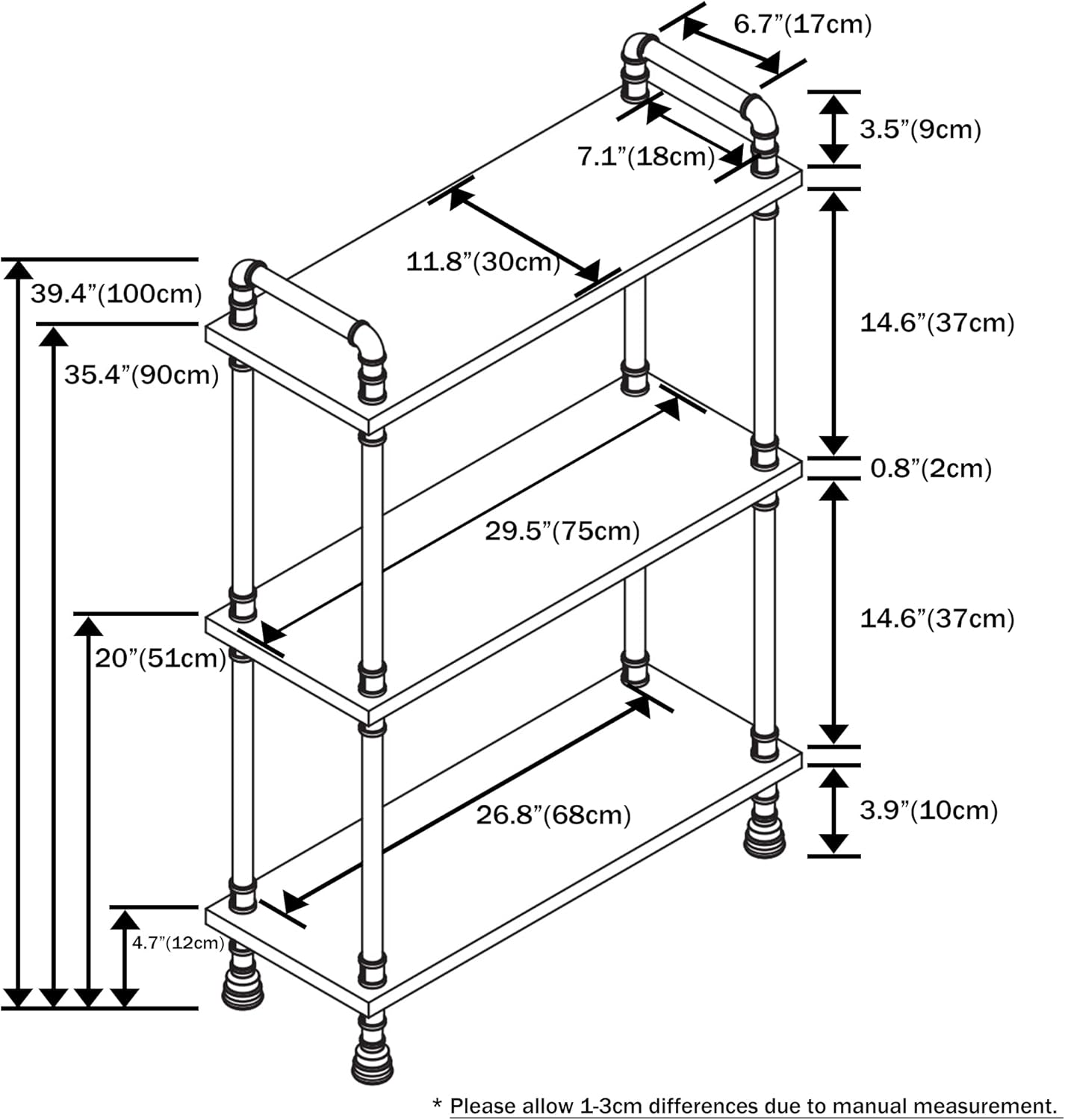 Industrial Bookshelf, 3 Tier Pipe Shelving, Industrial Pipe Shelf - Rustic Brown, 29.5" L x 11.8" W x 39" H