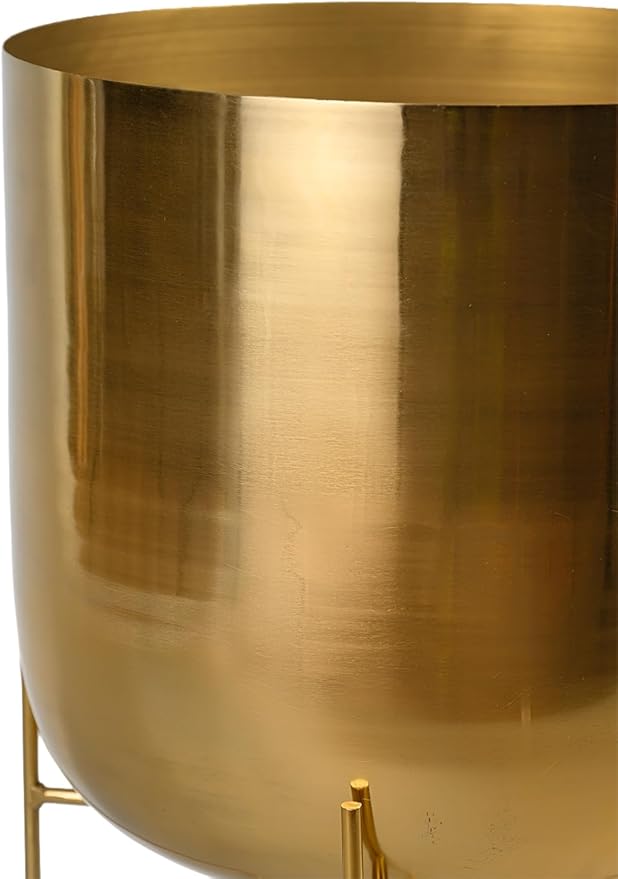 Serene Spaces Living Modern Mid‑Century Metal Indoor Planter with Stand, Gold Planter Pot, Indoor Plants – Decorative Planter Holder for Living Room, Kitchen & Office, 14" Diameter & 24" Tall