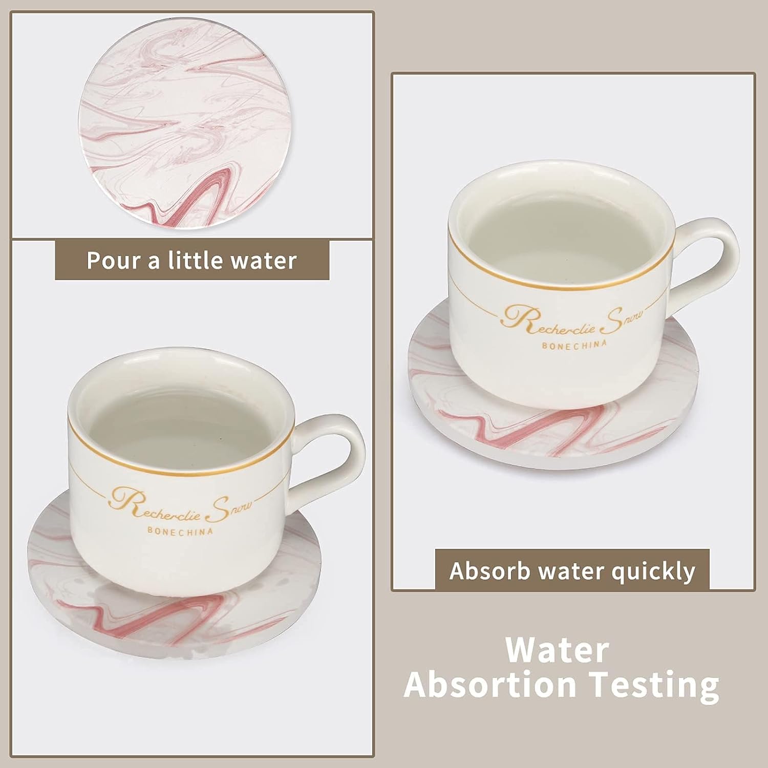 - Keep Tabletop Dry & Clean: Made from absorbent stone, the surface of the coasters absorbs water quickly within 5-10 seconds, will not stick to your table.