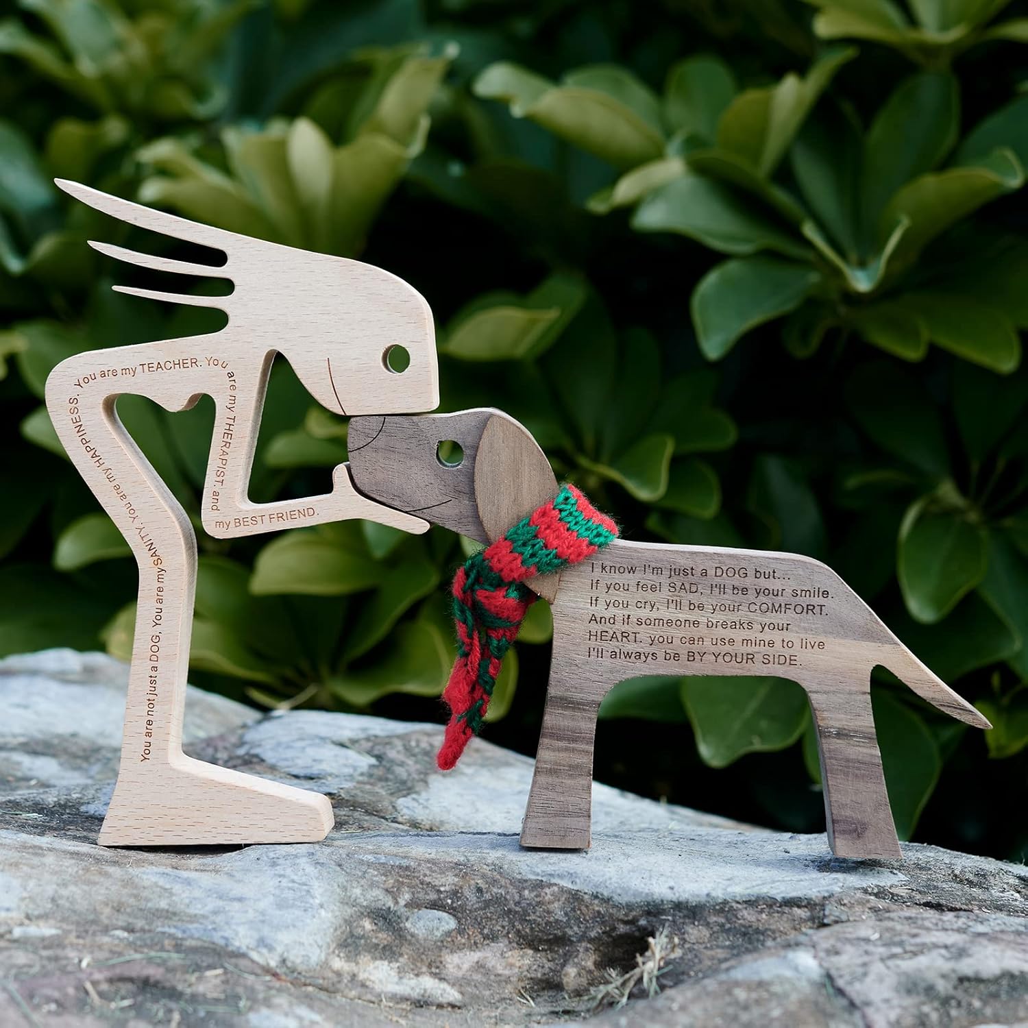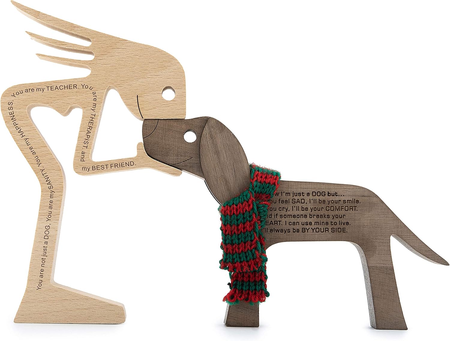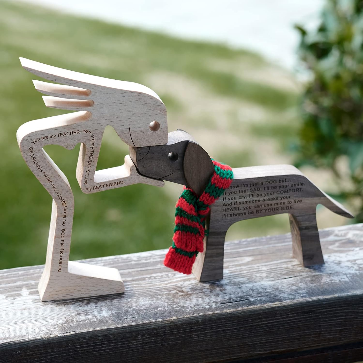 - 100% Natural Wood: 100% hand carved natural solid wood, this statue decor simply and intuitively shows the love between a dog and its human.