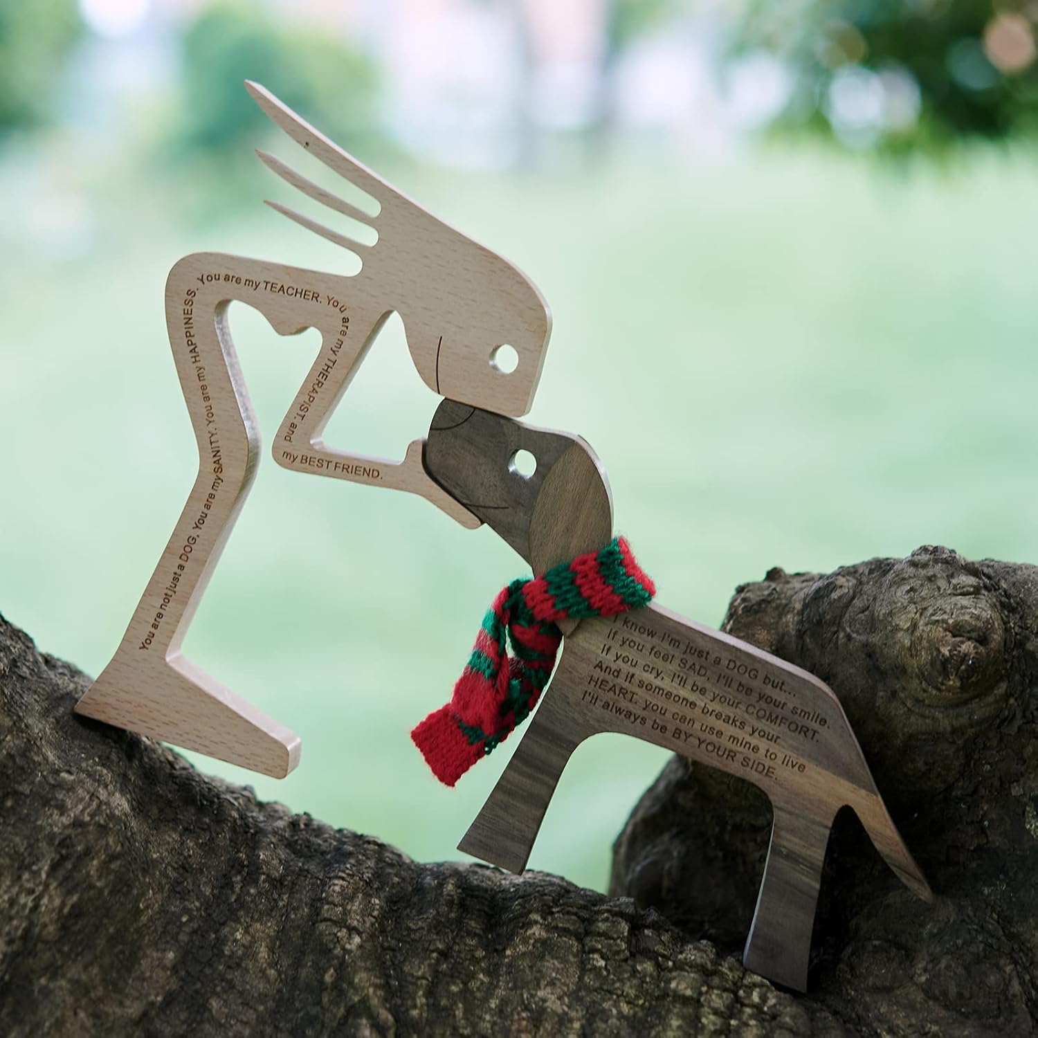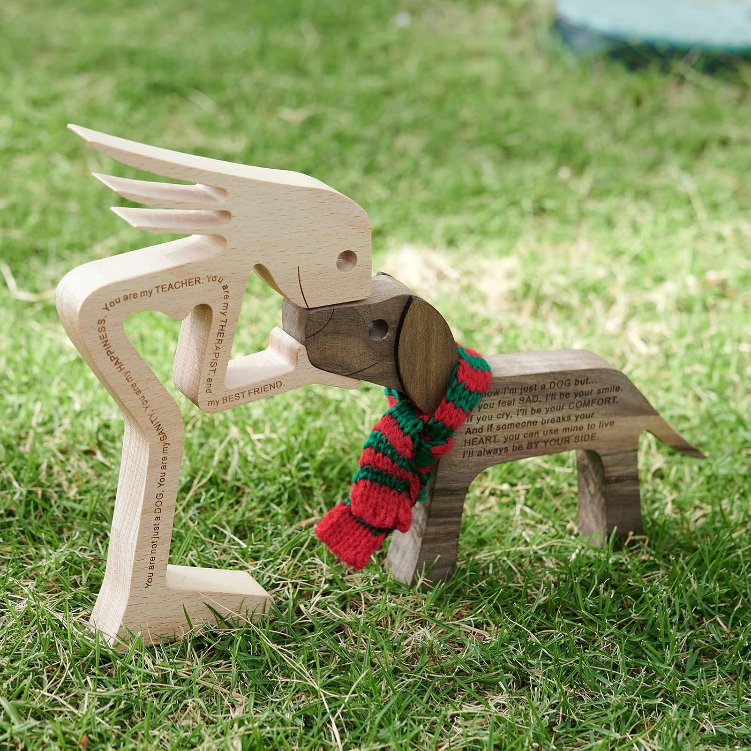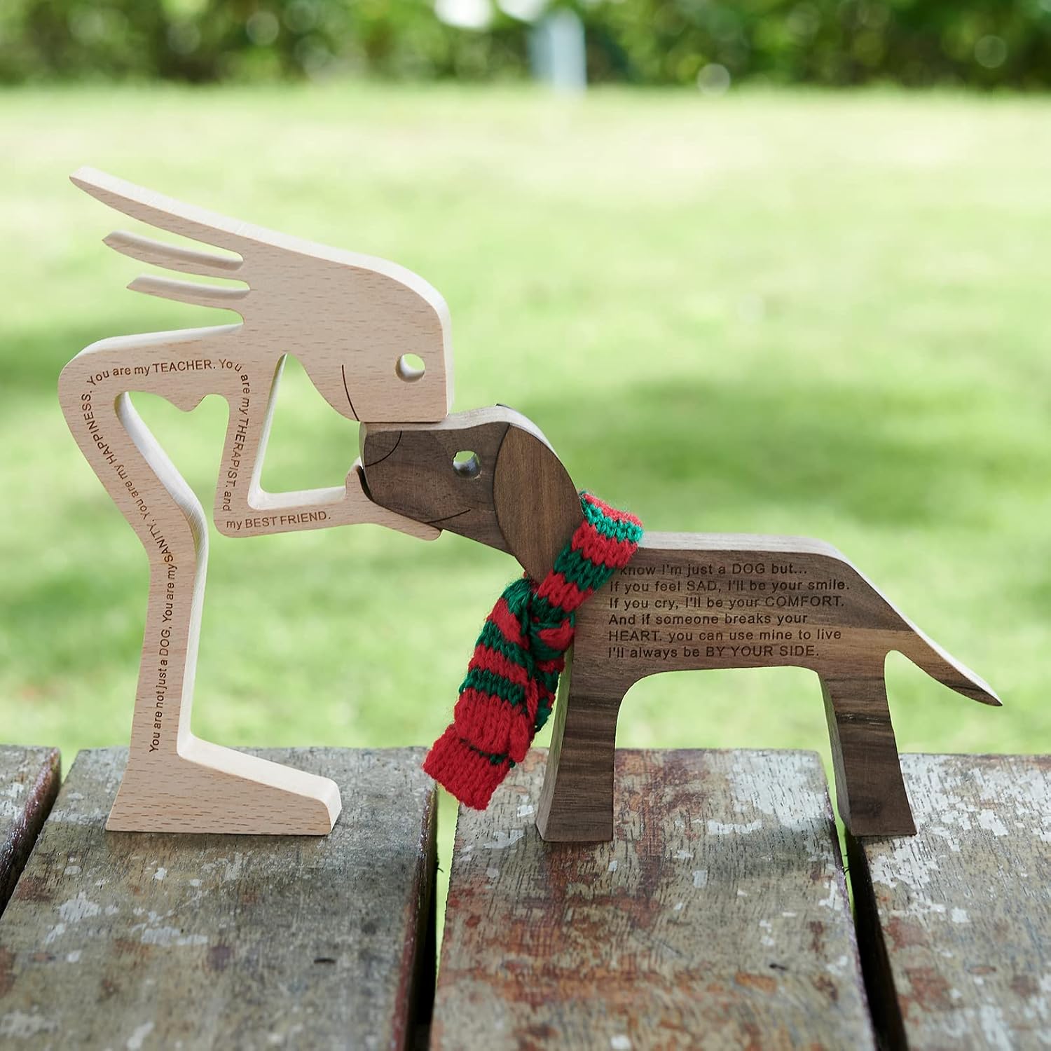 - 100% Natural Wood: 100% hand carved natural solid wood, this statue decor simply and intuitively shows the love between a dog and its human.