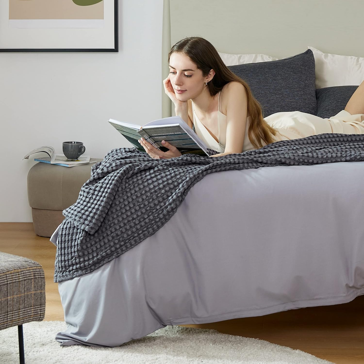 Bedsure Cooling Cotton Waffle Weave Blanket - Lightweight Breathable Blanket of Rayon Derived from Bamboo for Hot Sleepers, Luxury Throws for Bed, Couch and Sofa, Dark Grey, 50x70 Inches