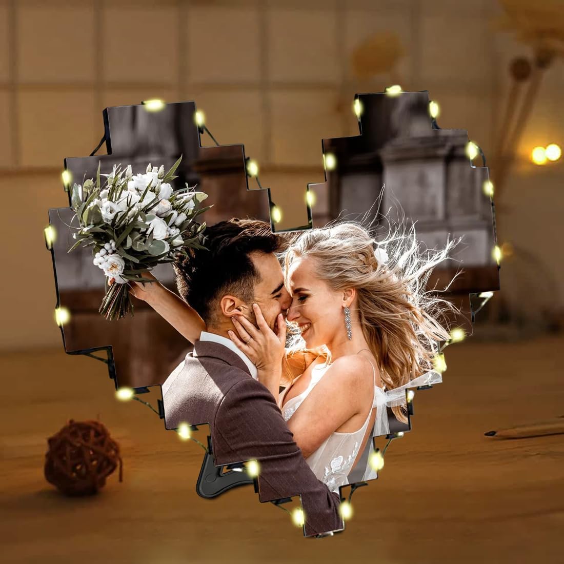 Heart Picture Frames Collage with custom 15 photo Wall Hanging Picture Frame with Led Light, Multi Photo Frame Collage for Family Pictures Wall Decor Gift For Mom Dad Father Lover Wife (15photo +dad)