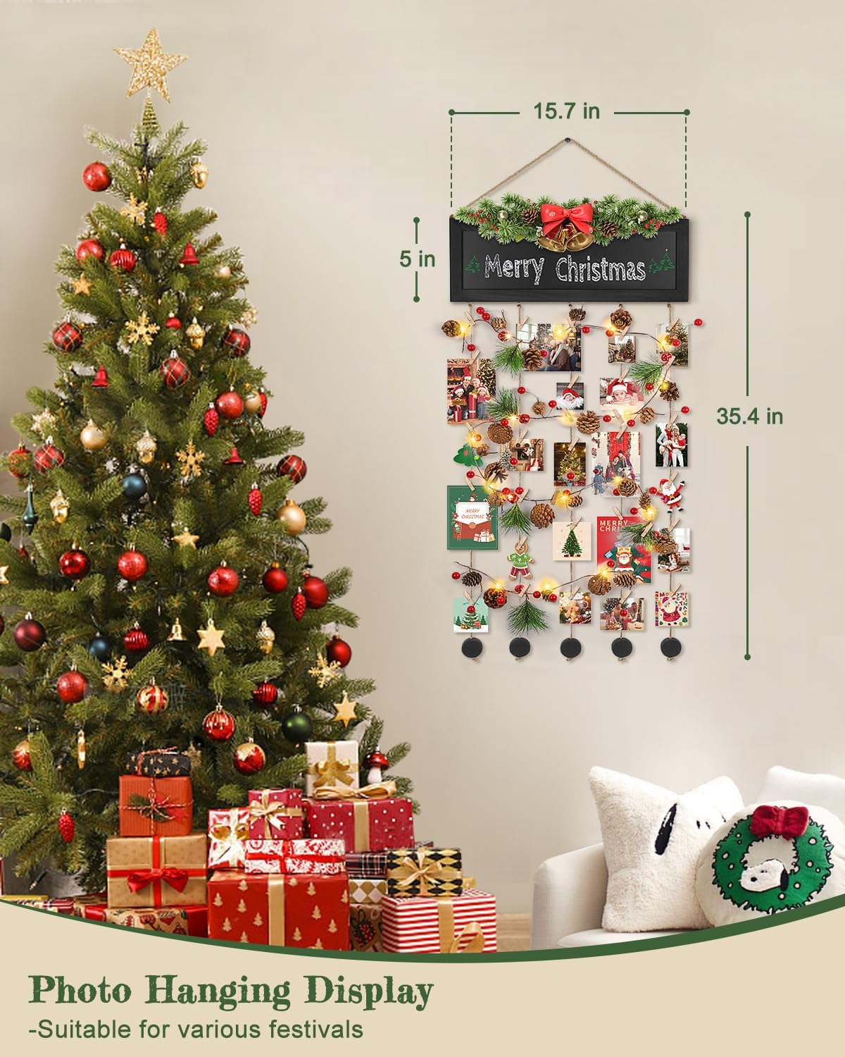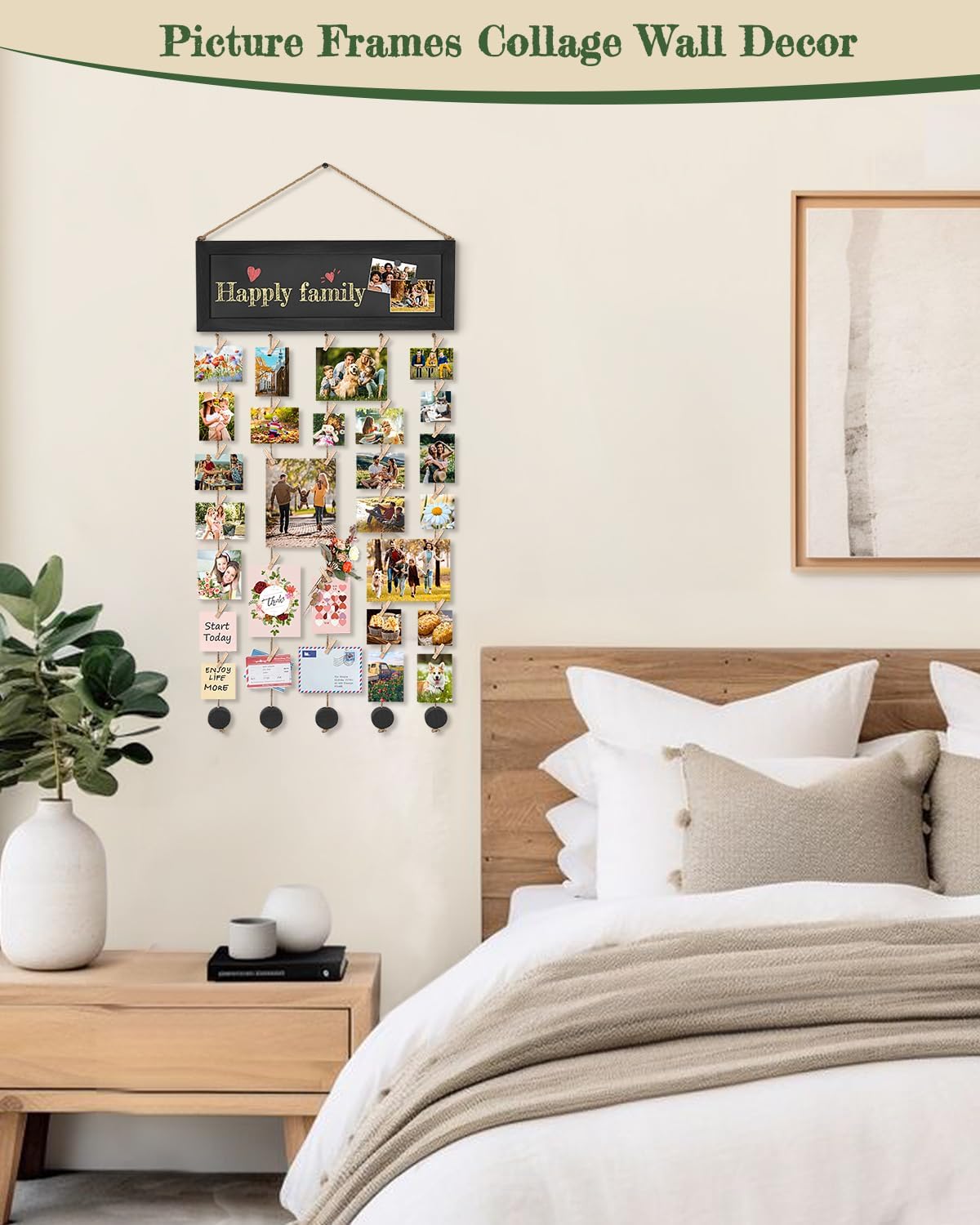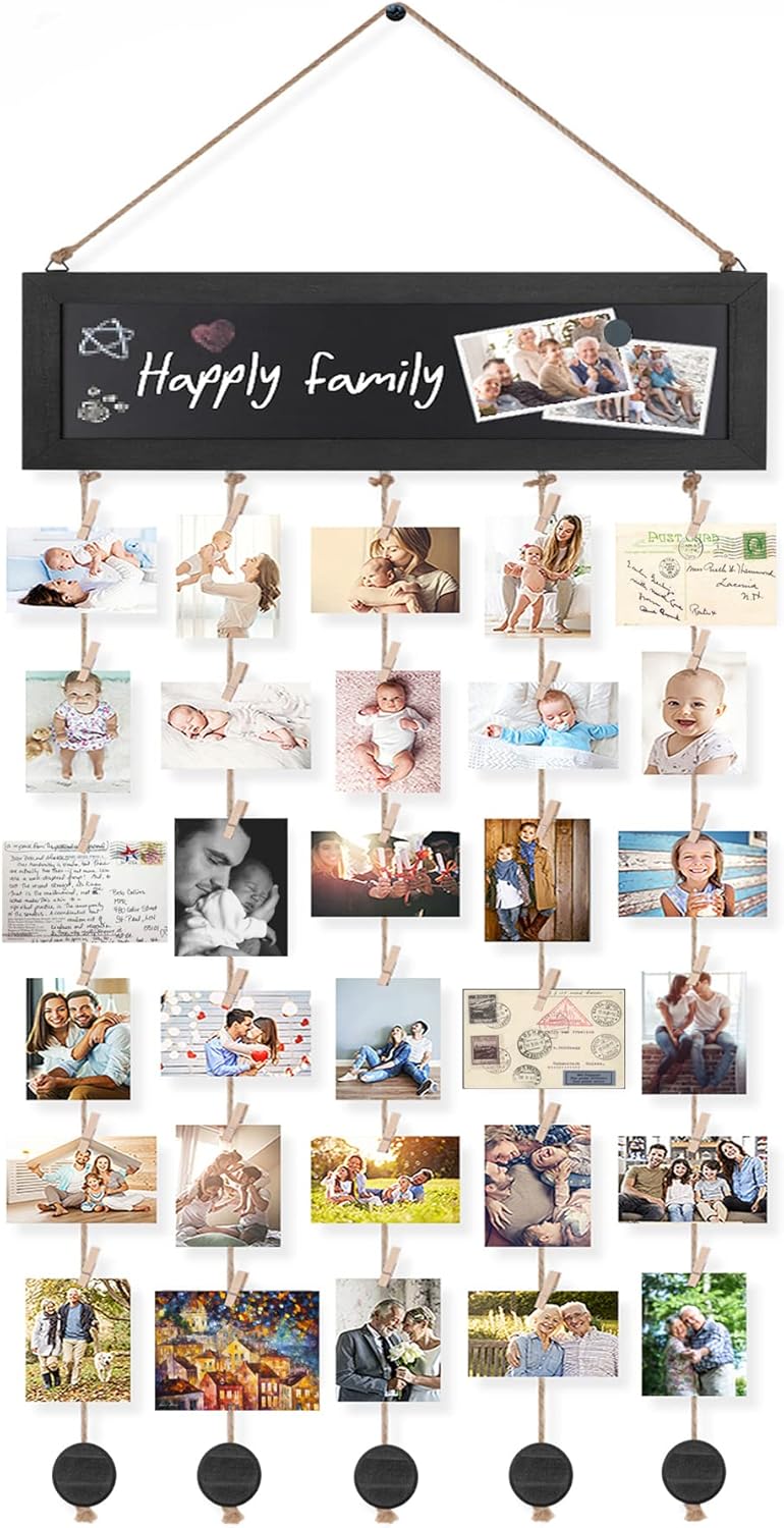 - ๐๐๐ซ๐๐๐๐ญ ๐๐๐ฒ ๐ญ๐จ ๐๐ข๐ฌ๐ฉ๐ฅ๐๐ฒ ๐๐ฎ๐ฅ๐ญ๐ข๐ฉ๐ฅ๐ ๐๐ก๐จ๐ญ๐จ๐ฌ: Simple design collage photo frames with 30 clips, 5 hemp rope, 3 magnets and 1 blackboard, you can cut the length of hemp rope as you want, which satisfies simple DIY design. What's more, it's easy to change the picture or cards with the 30 clips