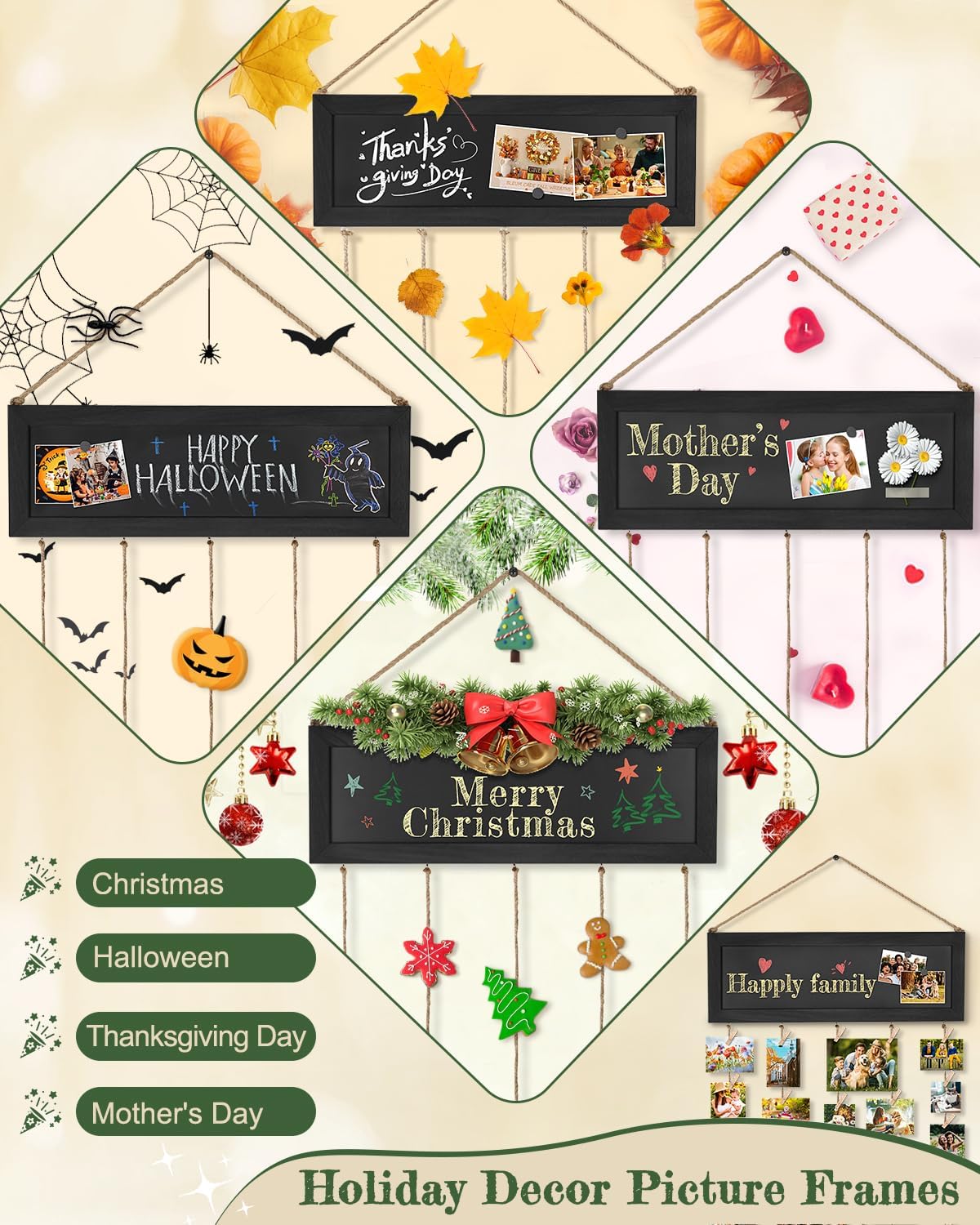 - ๐ ๐ฎ๐ง๐๐ญ๐ข๐จ๐ง๐๐ฅ ๐๐ข๐๐ญ๐ฎ๐ซ๐ ๐๐ซ๐ ๐๐ง๐ข๐ณ๐ ๐๐ข๐ฌ๐ฉ๐ฅ๐๐ฒ ๐ ๐ซ๐๐ฆ๐๐ฌ: This wall decor picture frames collage combined with magnetic blackboard, and you can write some information on the blackboard, such as the theme of the picture that you want to show, or other messages. Very conveniently to change messages at any time by damp soft cloth for liquid chalk markers or traditional chalks