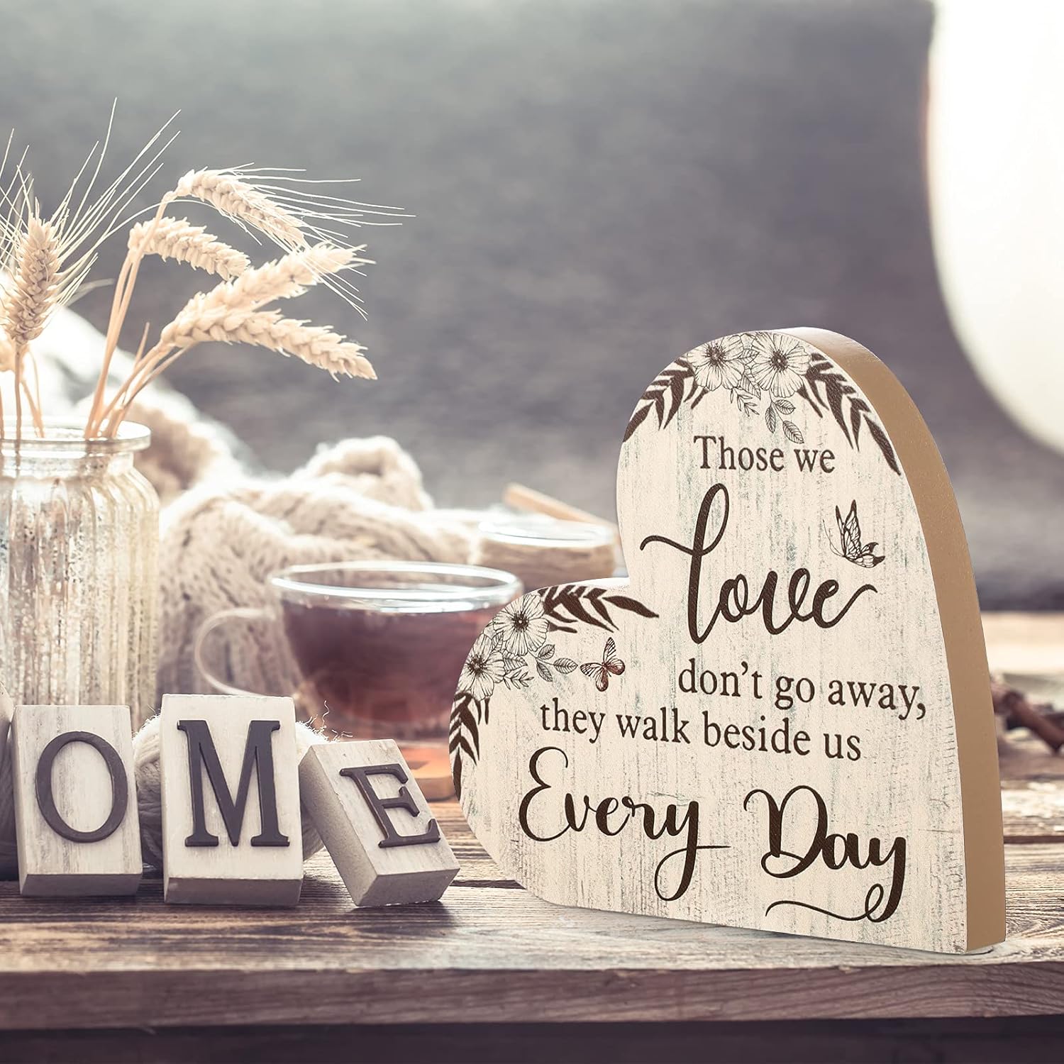 - Sympathy Gift: you will receive a heart shaped wooden sympathy gift with the words " those we love don't go away, they walk beside us every day" , which is a beautiful way to express your remembrance and respect for your loved ones