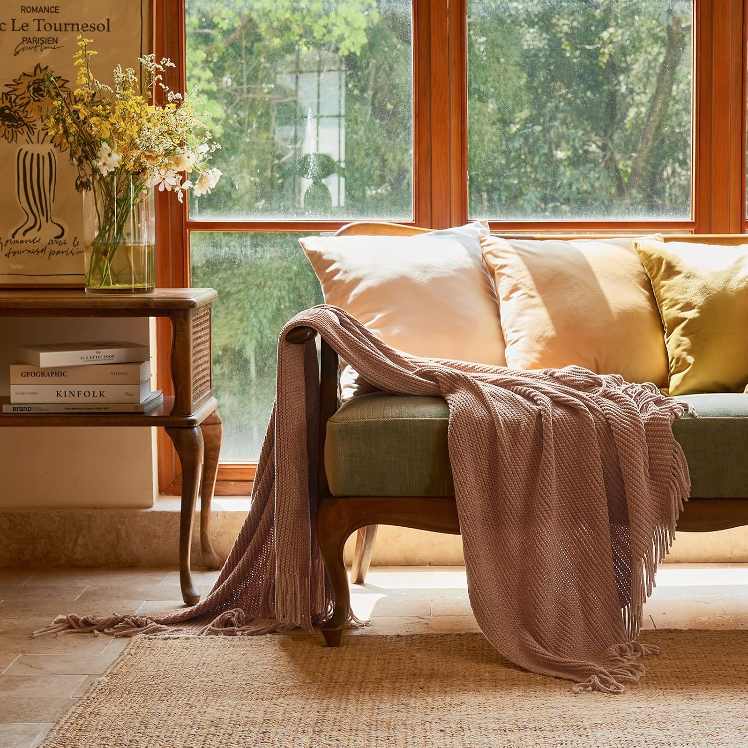 lifein Pink Throw Blanket for Couch, Soft Boho Decor Bed Throw,Cozy Chenille Knitted Small Farmhouse Lightweight Throw (Pink,50 * 60")