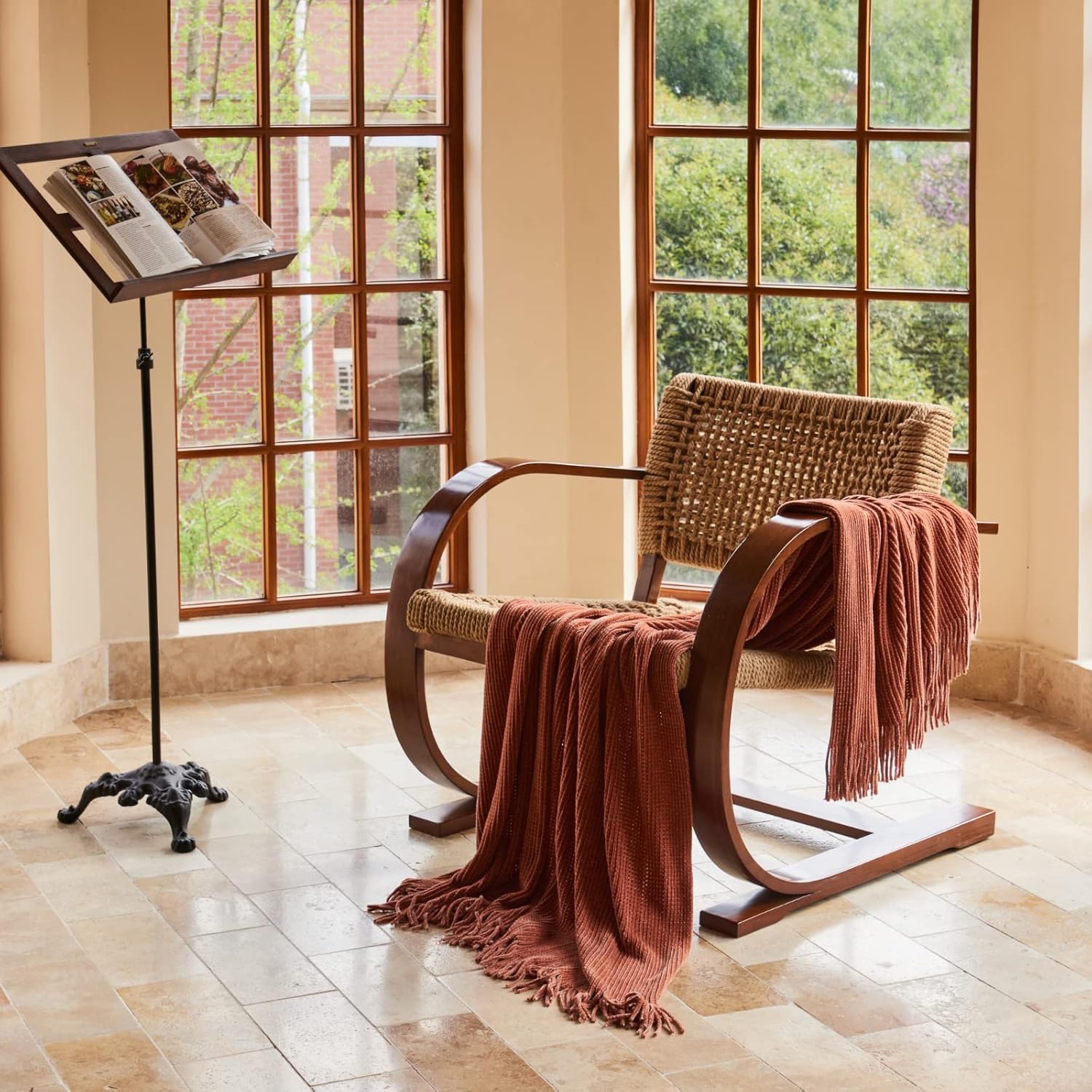 lifein Throw Blanket for Couch, Soft Boho Bed Throw,Cozy Burnt Orange Chenille Knitted Small Spring Lightweight Throw(Rust,50 * 60")