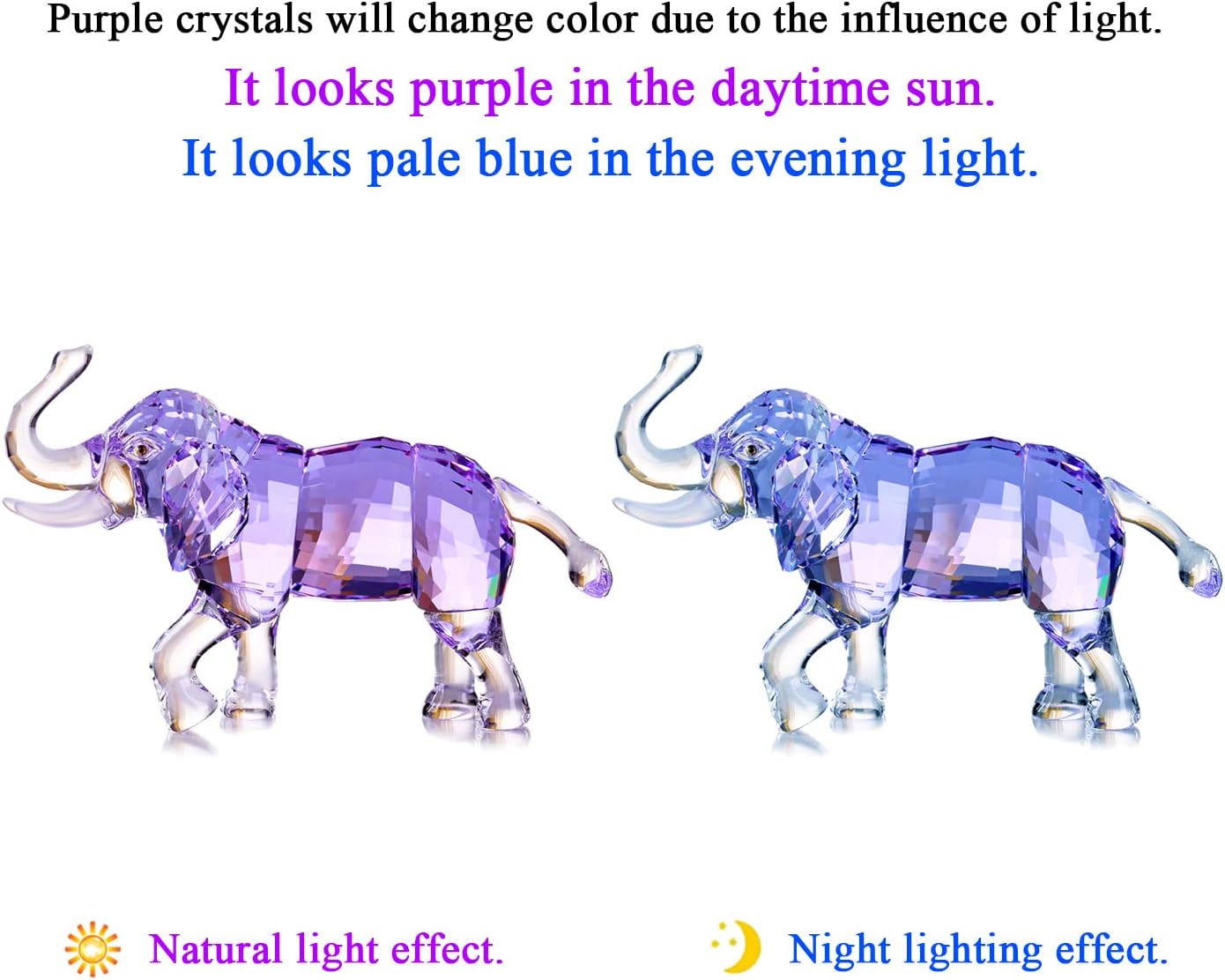 Crystal Lucky Elephant Figurine Collection Ornament Statue Animal Collectible Home Decor (Purple)