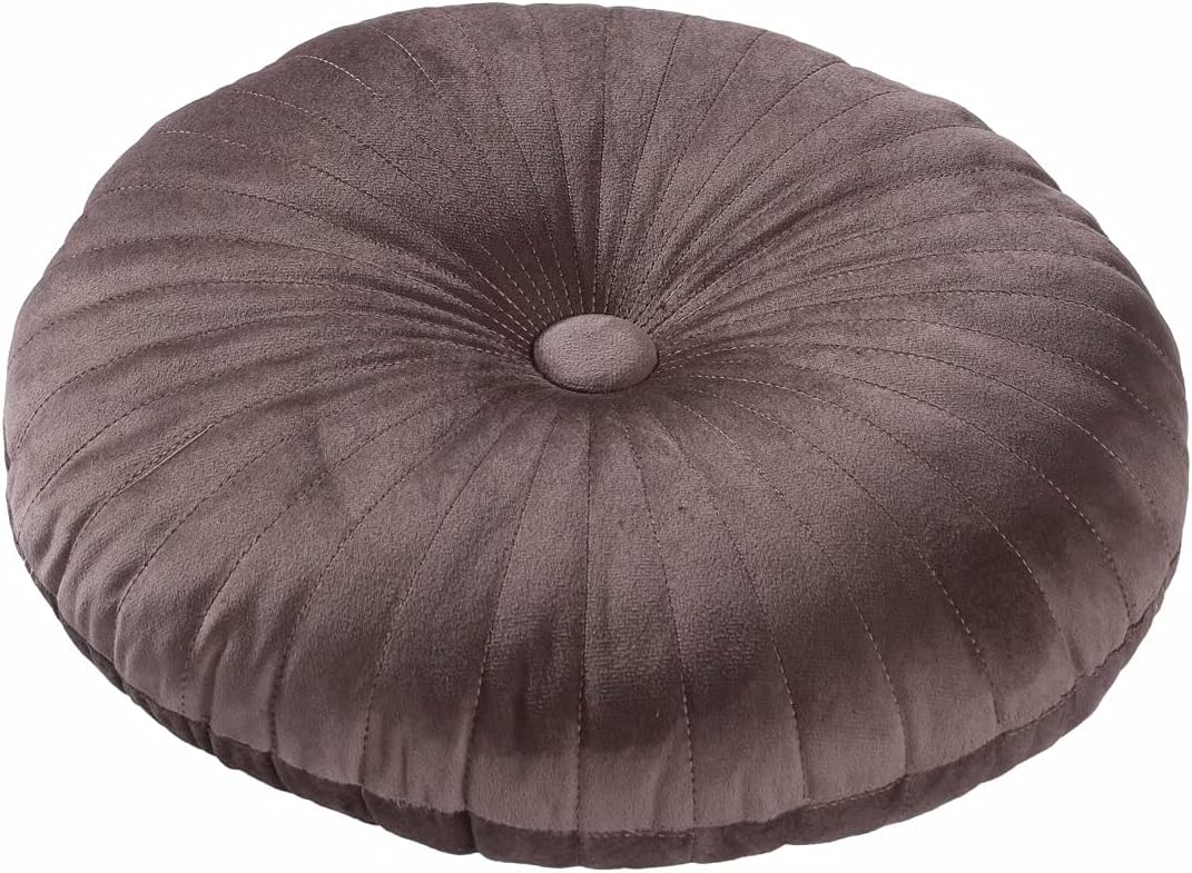 HLOVME Round Pillow Cushion for Couch Velvet Decorative Small Throw Pillow Solid Color for Living Room Bed Floor 13.7”, Brown
