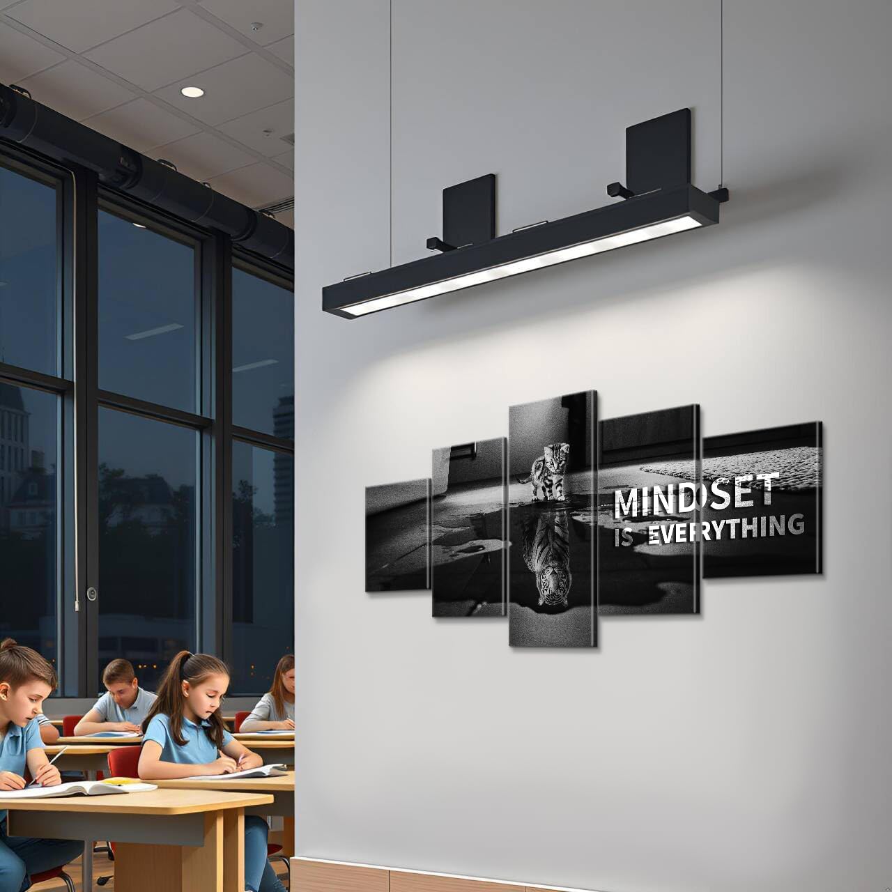 Mindset is Everything 5 Pieces Motivational Tiger Wall Art with Wooden Frame, Inspirational Quotes Poster for Office & Home Decor, Modern Motivational Wall Decor, Positive Office Art Canvas 60'' x 32''