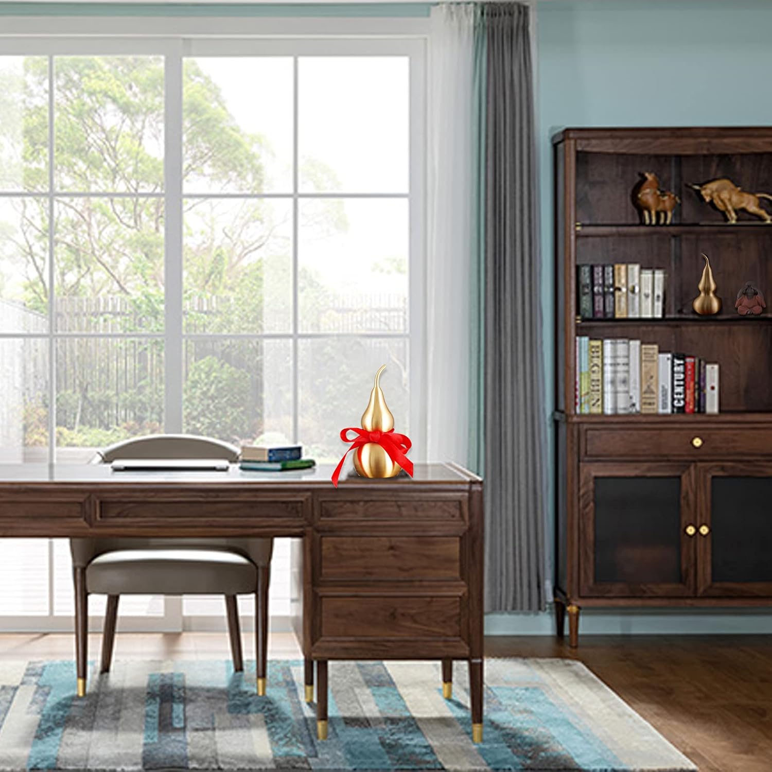 Feng Shui Decor Statue,Wu Lou Brass Gourd,with Red Luck Strip for Ideal Home Decoration,Collectible Figure Charm Amulet,6.36inch Tall,Full Brass,Hu Lu Bring Good Luck,Healthy,Wealth