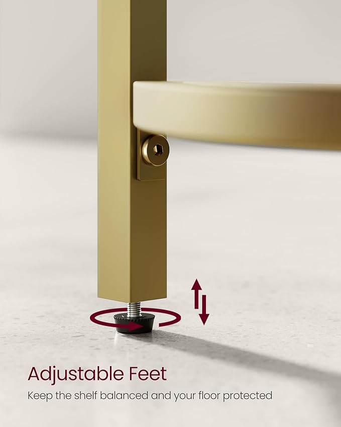 VASAGLE 5-Tier Corner Shelf Stand, Corner Bookshelf, Bathroom Organizer, Plant Stand, Tempered Glass, Steel Frame, Modern Style, for Living Room, Bathroom, Kitchen, Metallic Gold ULGT810A01