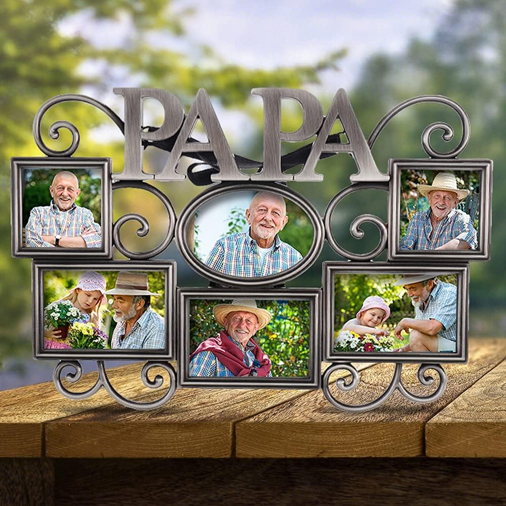 LASODY Papa Picture Frame,Cherish Every Memory,6 opening photo collage,Antique Silver,Father Day GiftsLasody Fathers Day And Mothers Day Collage Picture Frame (3”X2“+2“x2", Papa)