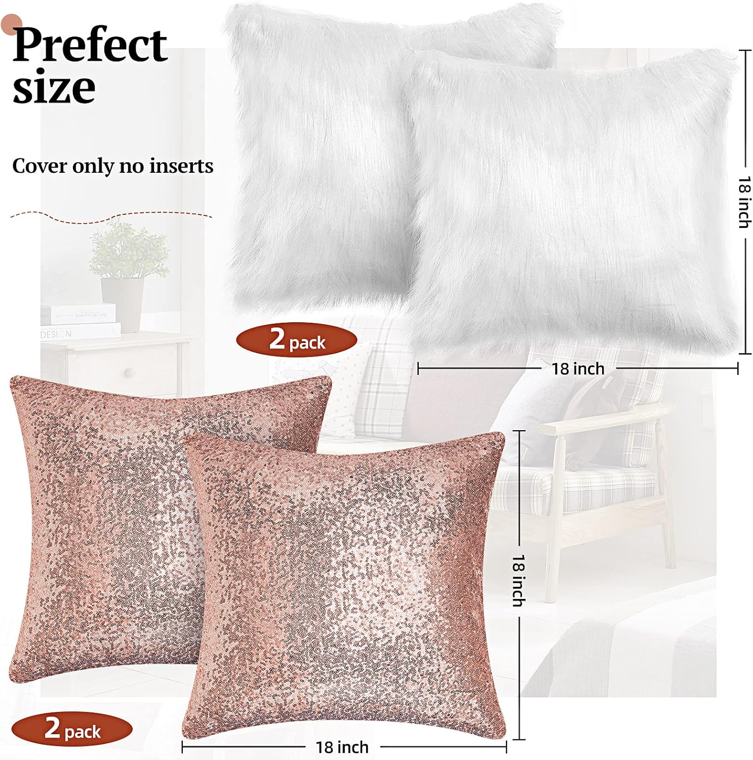 - Well made: the glitter decorative pillowcases are made of opaque sequin fabric, which is satin fabric embroidered with 3.0 mm shiny sequins, the sequins are also glitter and shiny; Faux fur throw pillow covers are made from polyester, soft and comfortable to touch, while possessing both decorative effect and practicability