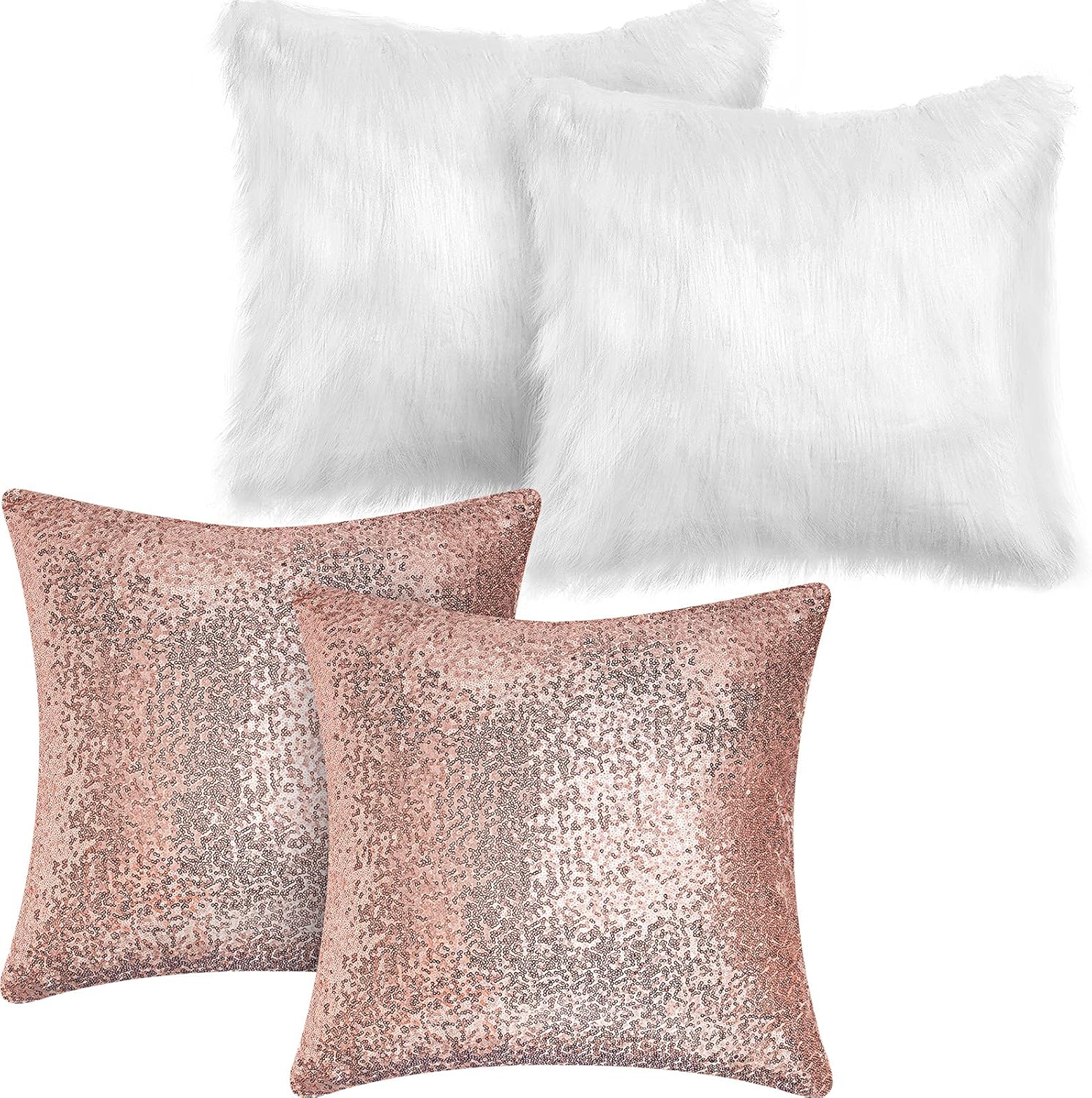 - 2 Styles: there are 4 pieces decorative pillow cases in 2 styles, including 2 pieces with sequin design and 2 pieces with fluffy design, with charming color decorated, you can choose the style you want to match your room style or furniture style, enough quantity also support your replacing need
