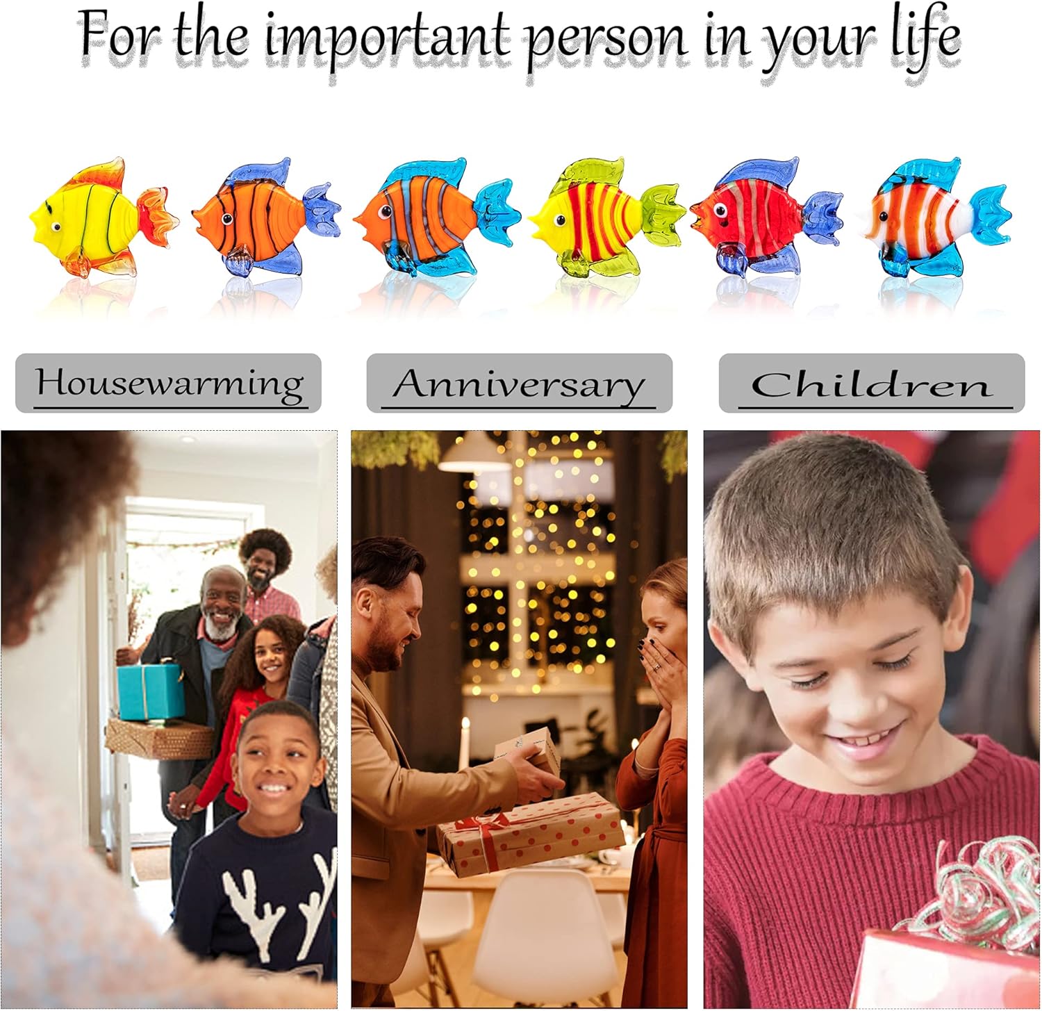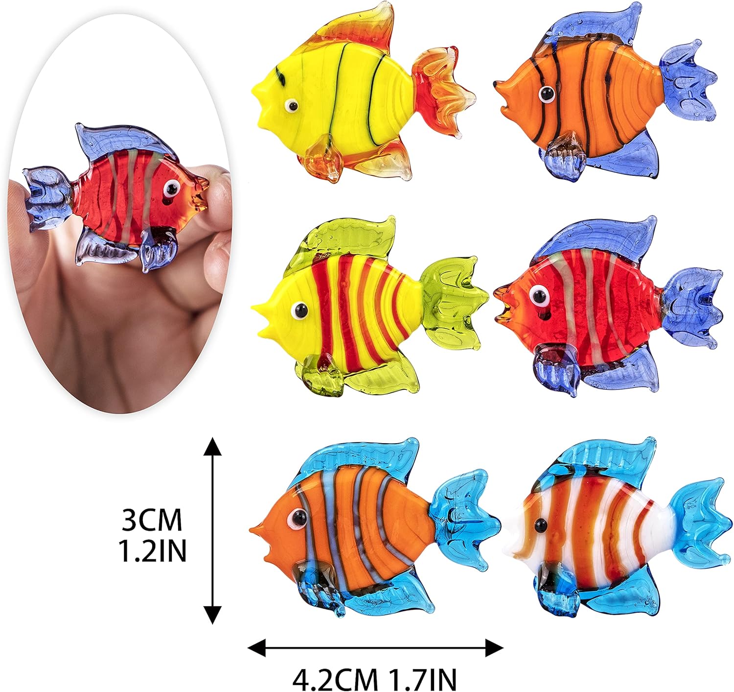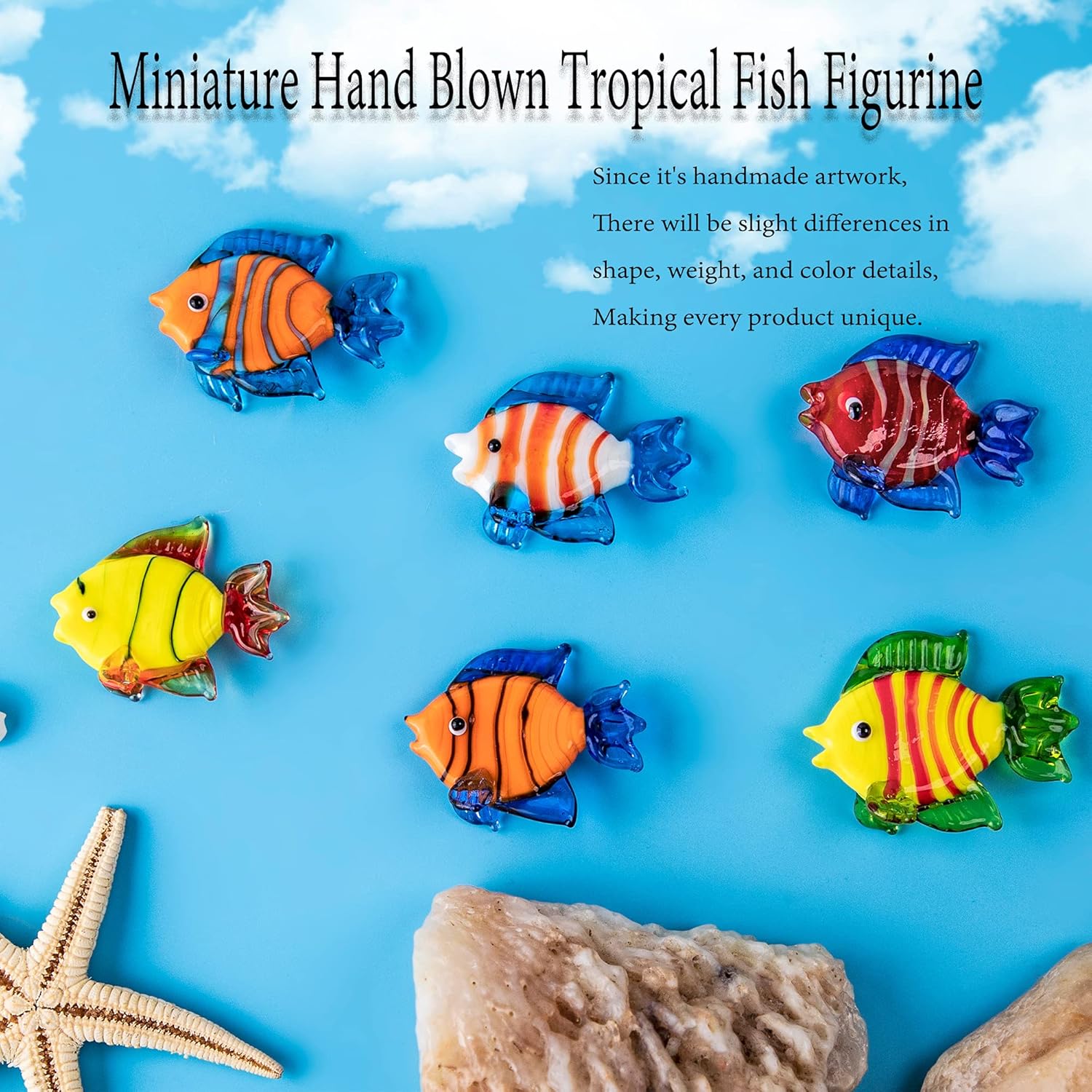 HDCRYSTALGIFTS Miniature Hand Blown Tropical Fish Figurine Handmade Art Glass Sea Animals Collection, Set of 6