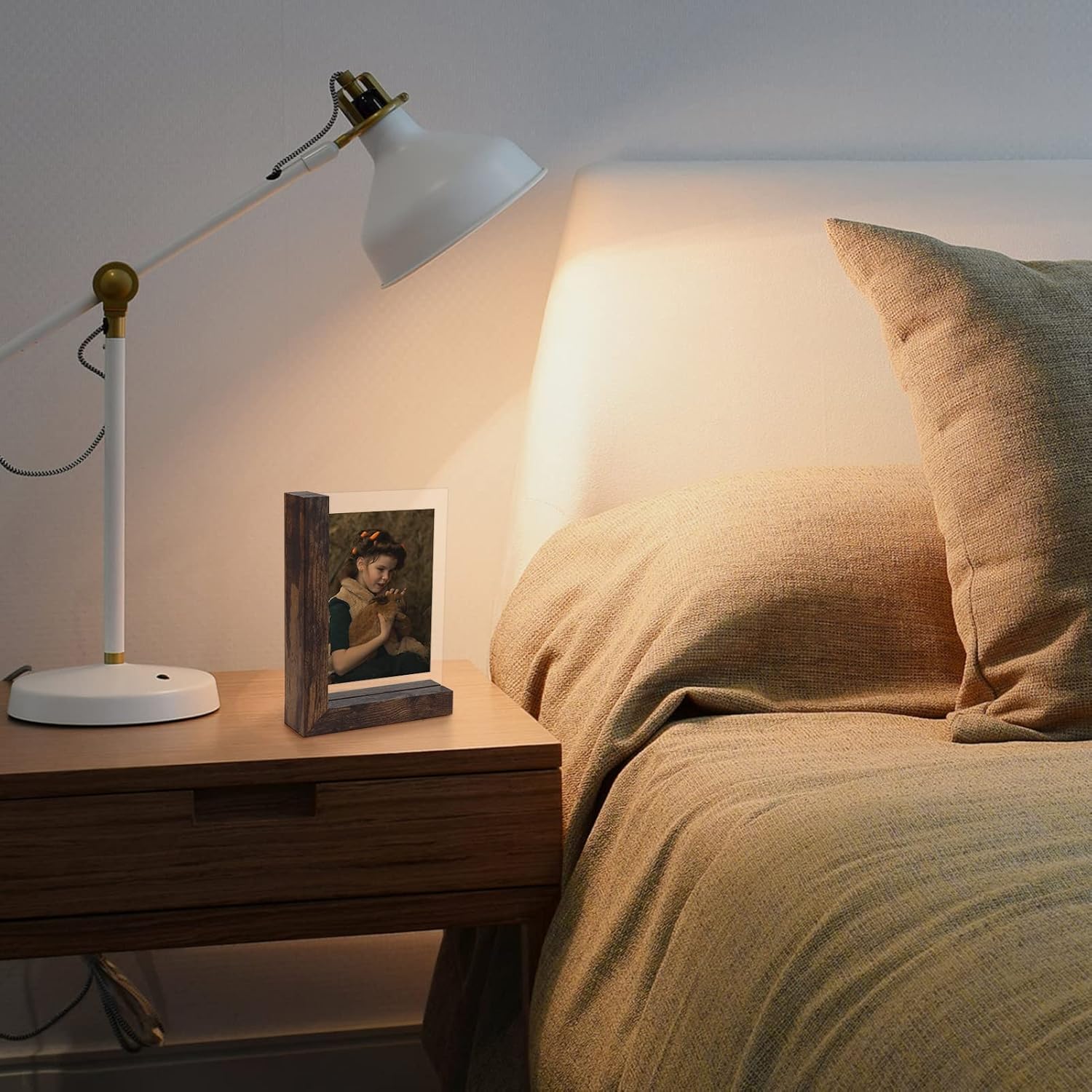 - FRAMELESS DESIGN: The 4x6 double sided picture frame has HD tempered glass and the frameless design allows you to easily take out the glass and change the photos in it. You can place it in the office, bedroom, dining room, living room, coffee shop.