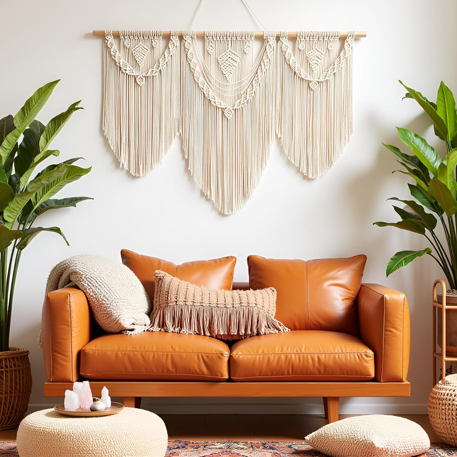 - Great gift idea: This large macrame will become a perfect birthday, wedding, anniversary, housewarming or any special occasion gift for bedroom wall decor, living room decor or even kitchen wall decor,Woven macrame wall is a thoughtful gift for your friends and family who loves wall display, bohemian home decoration.