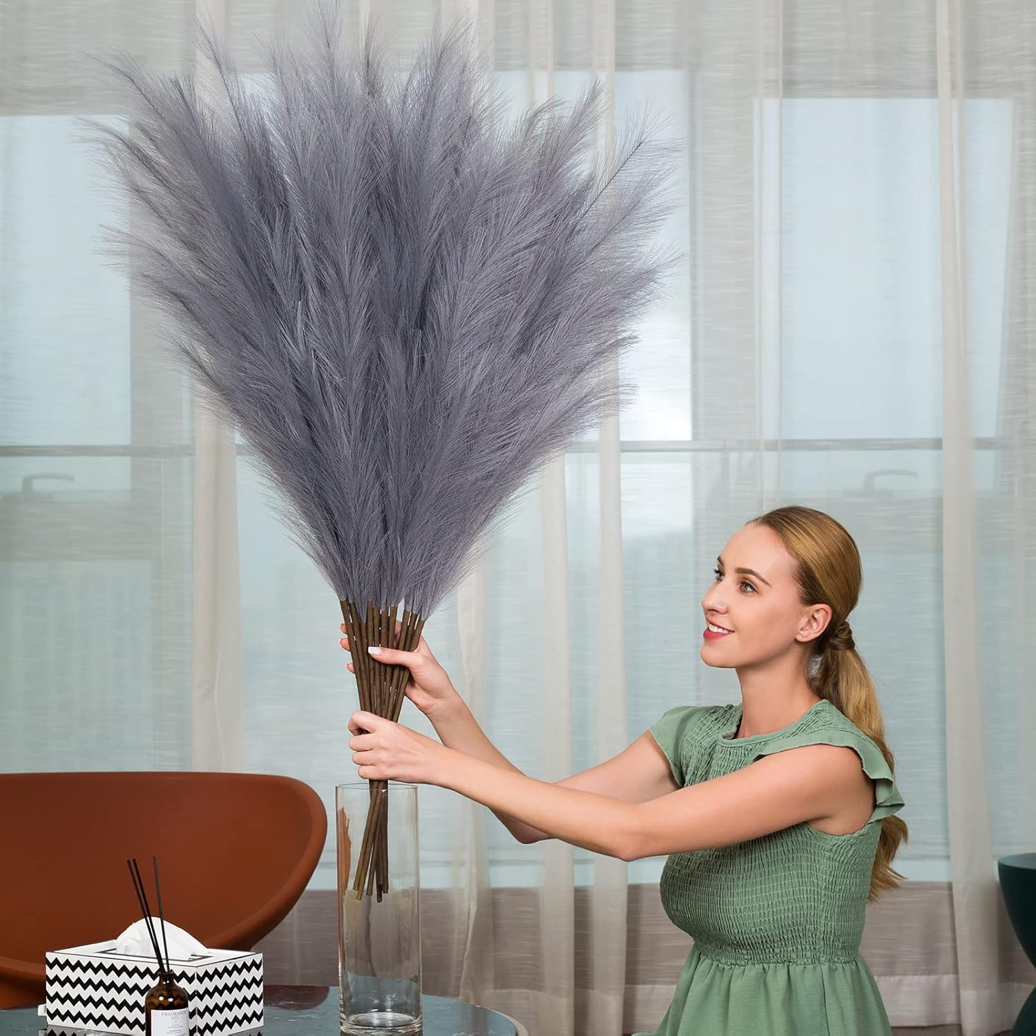 - Minimalistic and Elegant Decor Piece: Really nice faux pampas grass for home decor, display in your hallway, kitchen, living room, bedroom, front room, dining room or entry way... any space.They are also a great addition to wedding, flower arrangements, lifestyle photography, party, bohemian decorate and etc