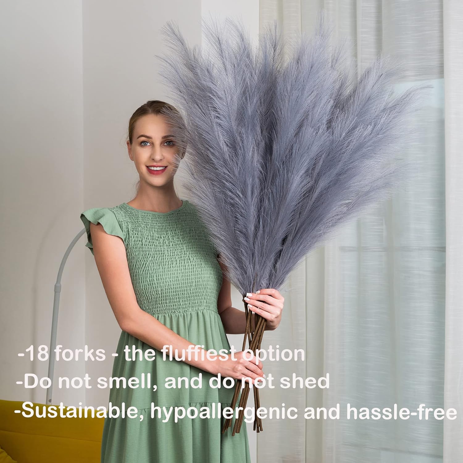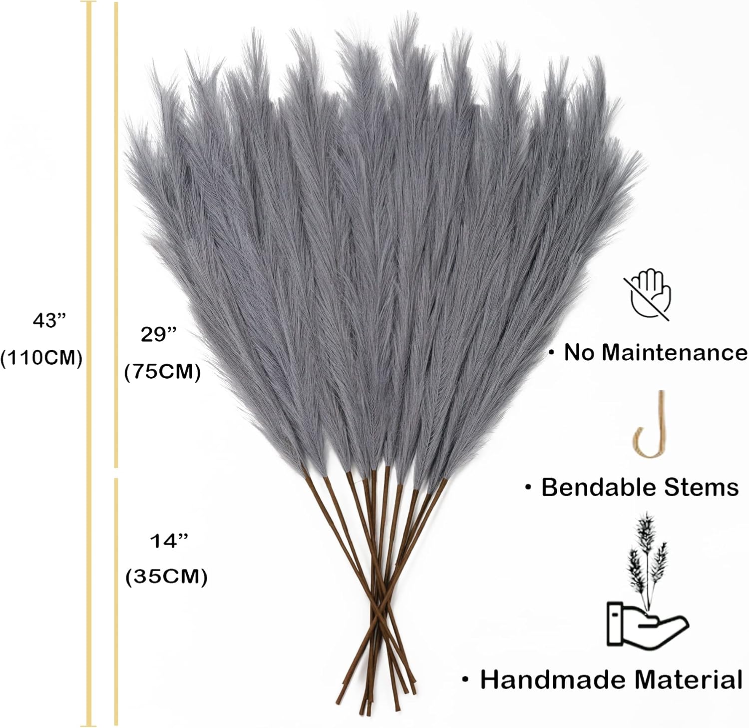 - Great Alternative for Real Pampas: Unlike dried pampas grass, our artificial pampass grass dose not shed like the real version, the long fibers on each stick are tied so strongly that they do not fall off . No allergens, no smell, without the maintenance cleaning and will last a long time
