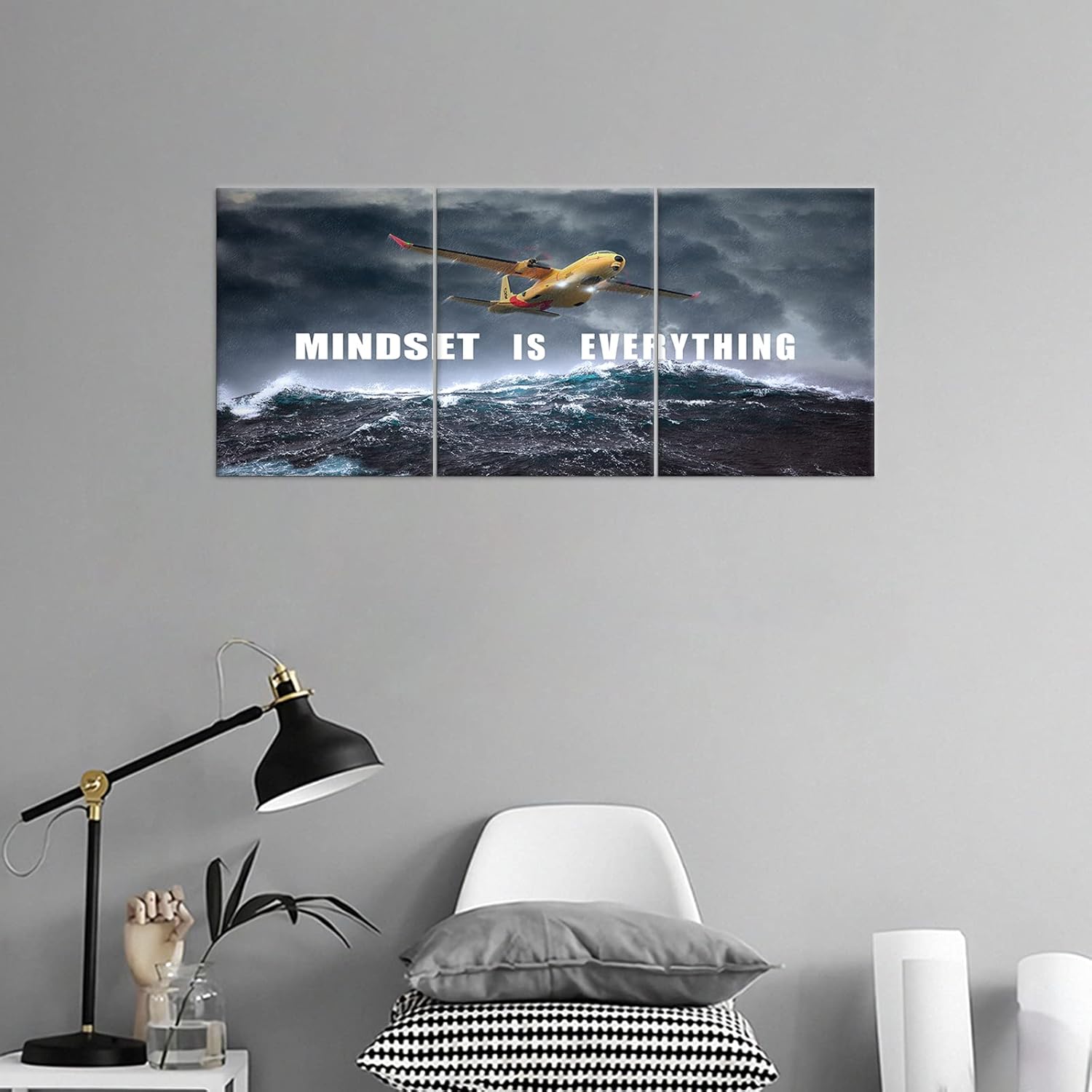 Inspirational Wall Art Rainstorm Airplane Mindset is Everything Canvas Pictures Painting Motivational Posters Inspiring Success Quotes for Office Wall Decor Print Artwork Ready to Hang [36''W x 16''H]